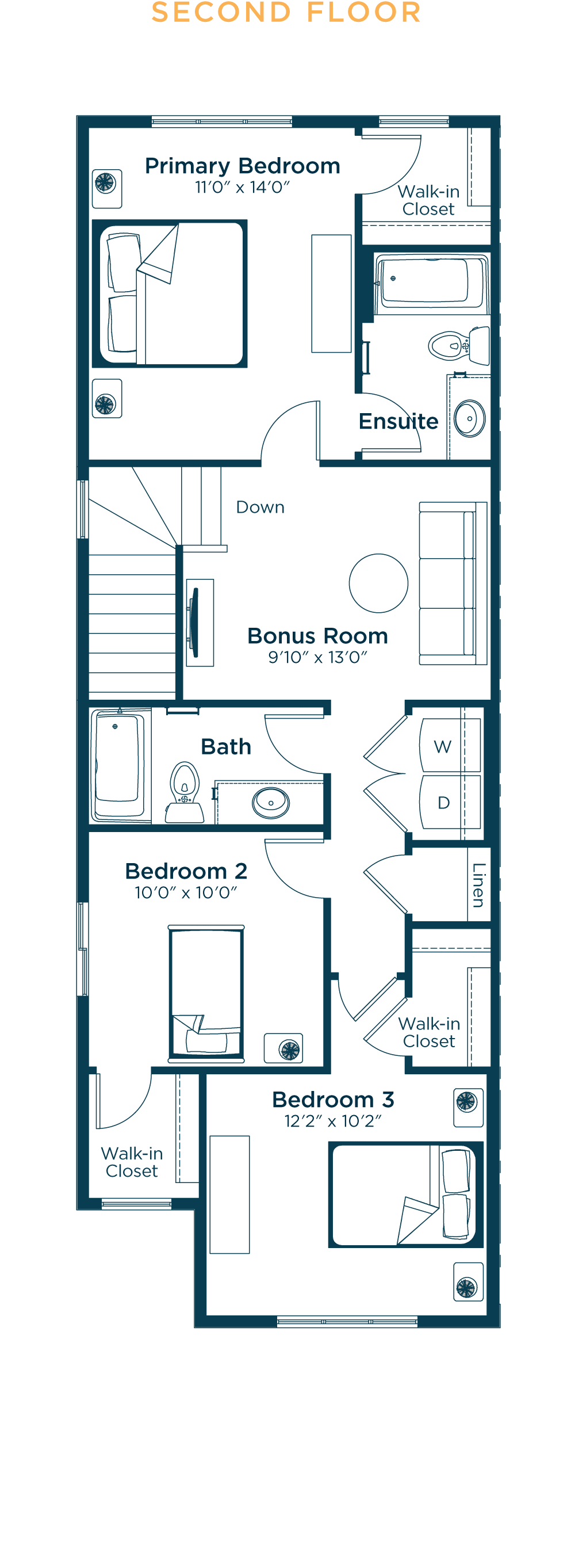 Living up to its name, the Nest is a cozy duplex home with space to grow your flock. The distinctive side entry opens to a bright, open-concept main floor highlighted by an impressive L-shaped island kitchen, which connects to the great room and nook. Upstairs, the layout is ideal: a bonus room creates separation for all the bedrooms, and every bedroom includes a walk-in closet. The spacious primary bedroom features a comfortable 3-piece ensuite. Don't forget to ask us about our future home options!