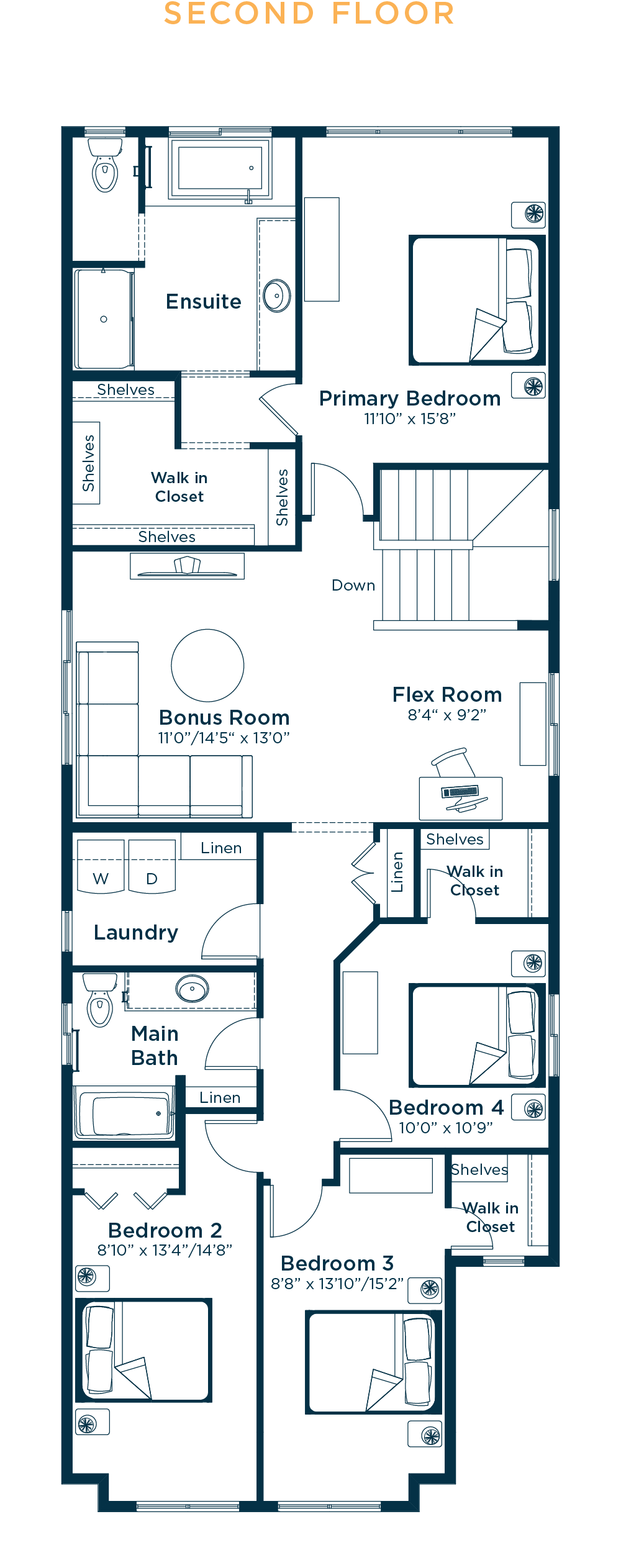 The Oxford is spacious and thoughtfully designed. On the main floor is a flex room that can be used as a home office or converted to a guest bedroom. Further into the home is a gourmet kitchen with a center island that flows seamlessly into the bright and sunny great room and nook, perfect for entertaining. The mud room conveniently connects to the walk through pantry for ease of unloading groceries. Travelling upstairs, there is an impressive primary suite with a 4-piece ensuite and large walk in closet, separated from the additional 3 bedrooms. The center of the second floor offers a cozy bonus room to binge watch your favourite tv shows and another flex room that can be used to studying. Downstairs, the options for a fully developed 1 or 2 bedroom basement for additional rental income.