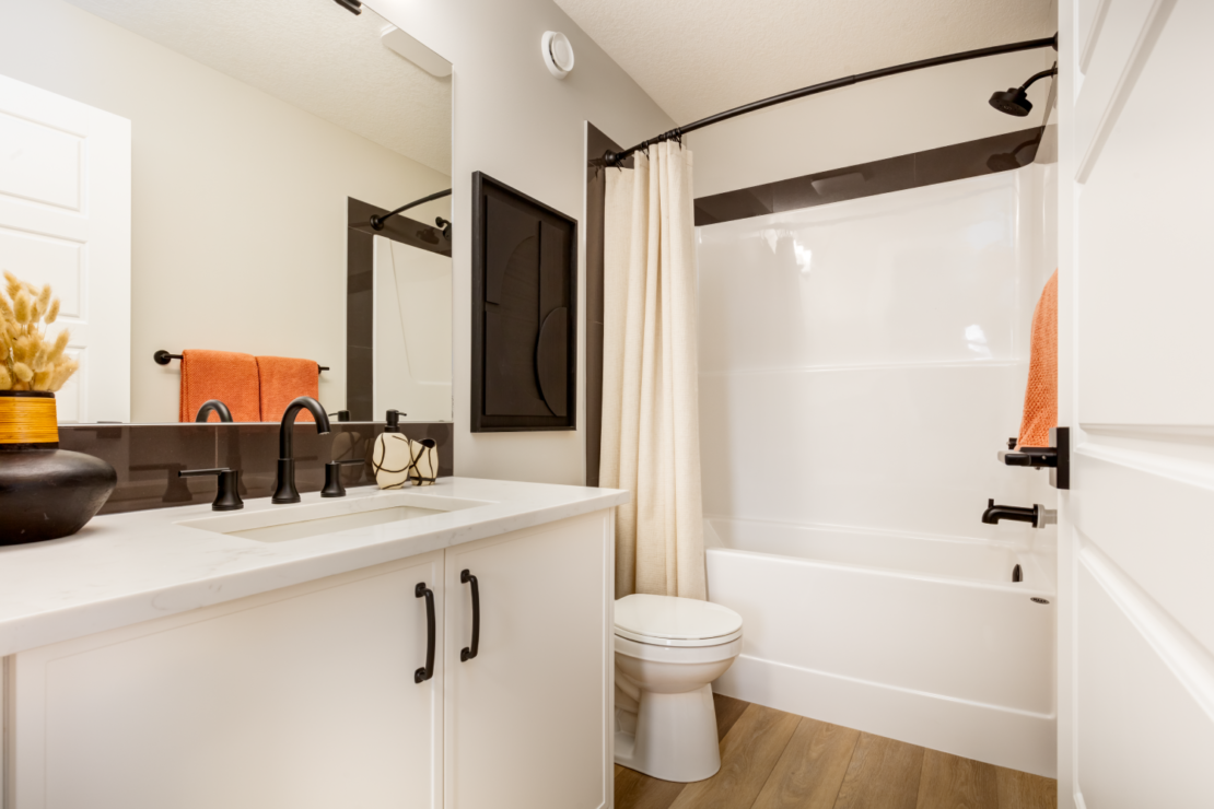 - 1 ¼” granite or quartz countertops in kitchen, ensuite and all baths
