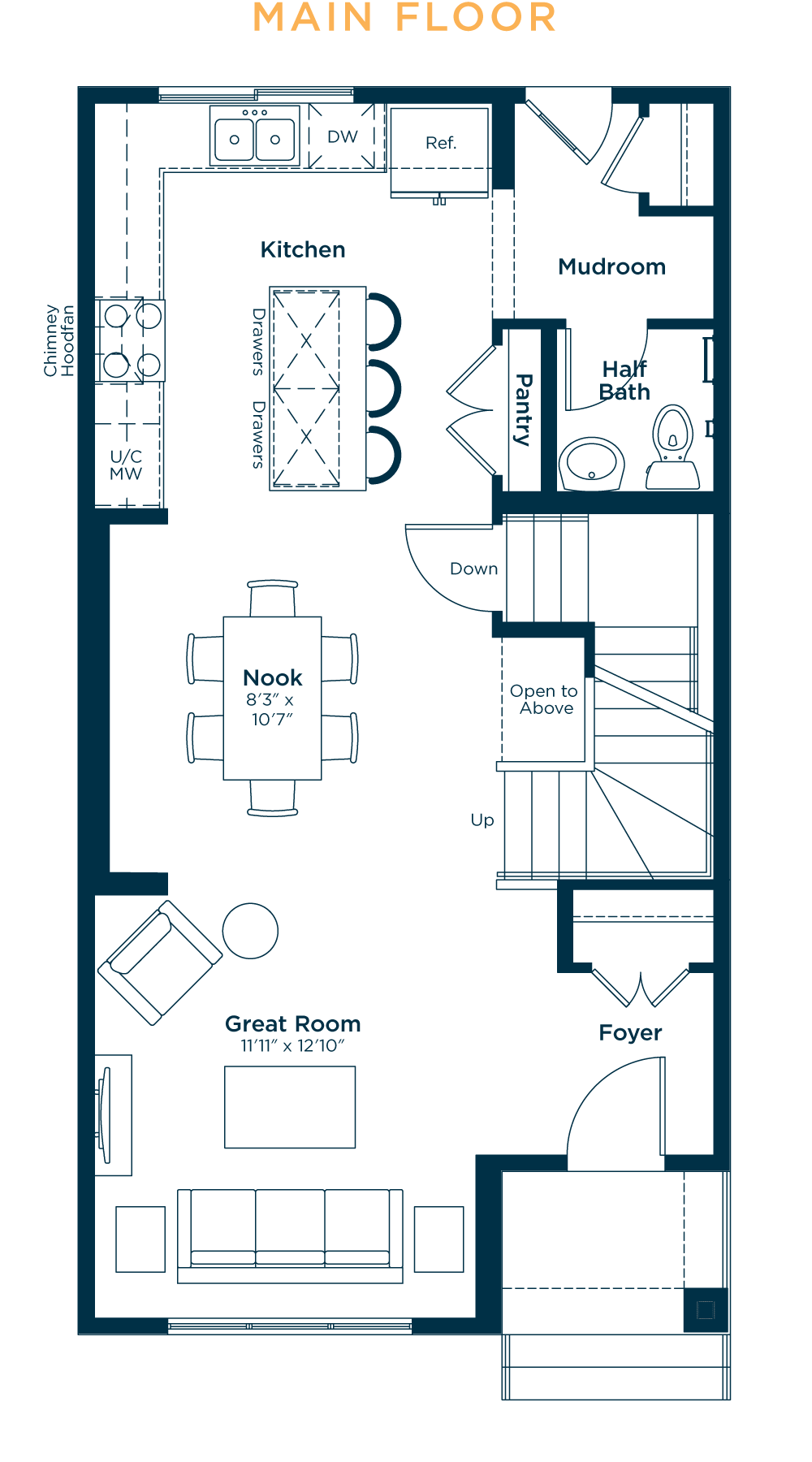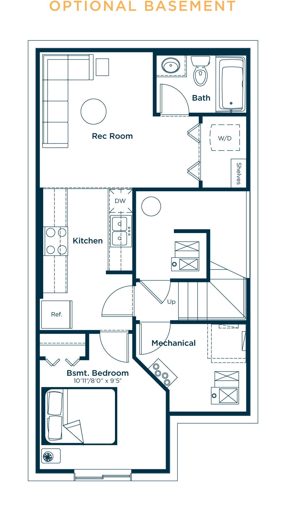 The Hazel is designed with a contemporary style that combines functionality with elegance. The main floor of the Hazel is an open-concept layout that offers plenty of space for cooking and entertaining. The gourmet L-shaped kitchen features modern appliances, ample storage space, and a large island for food preparation and casual dining. Upstairs features well-designed bedrooms and bathrooms that provide privacy and comfort; a spacious primary bedroom with a large walk-in closet and an ensuite bathroom with a walk-in shower or bathtub, two additional bedrooms, each with its own closet and plenty of natural light, and a laundry room with lots of storage space. The basement is optional and can be developed for storage, recreation, or additional living space.