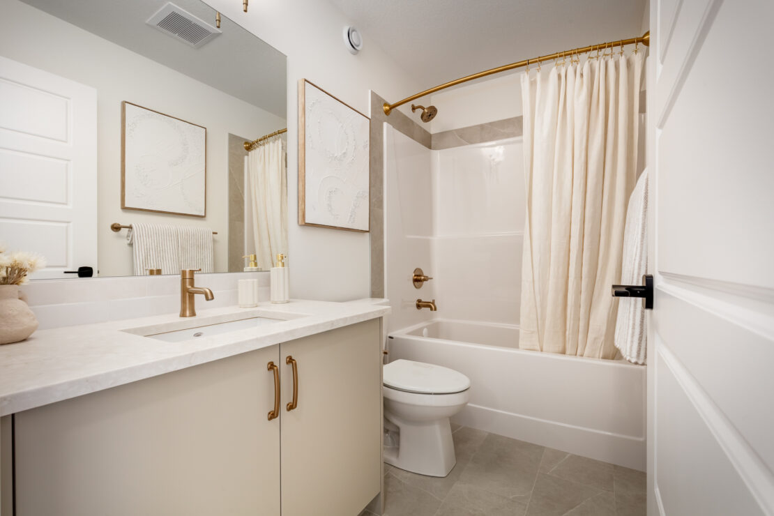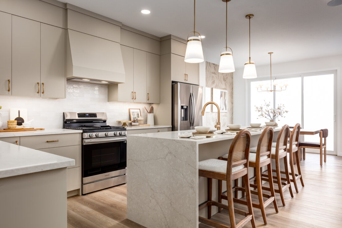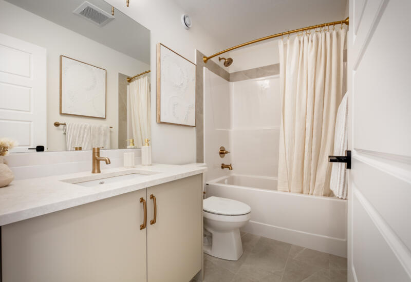 - 1 ¼” granite or quartz countertops in kitchen, ensuite and all baths