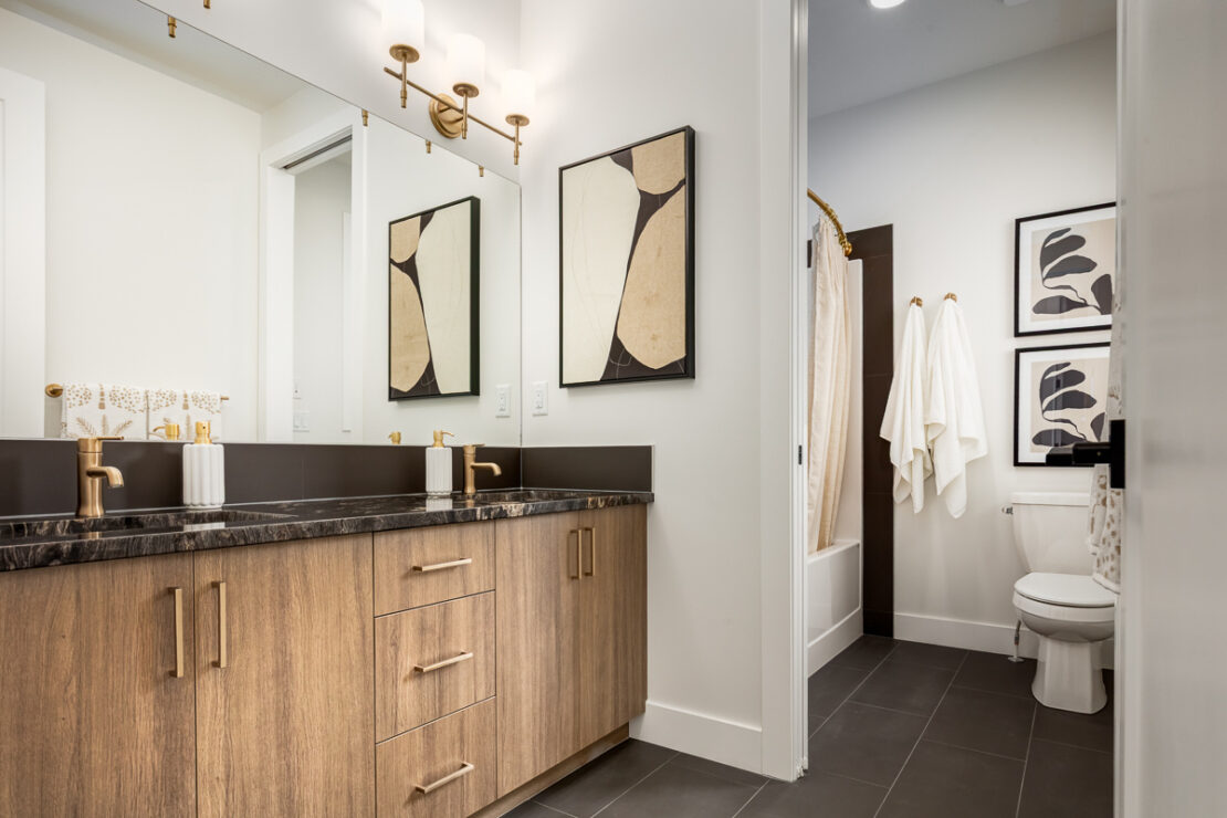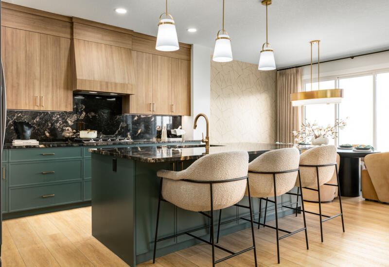 - 1 ¼” granite or quartz countertops in kitchen, ensuite and all baths