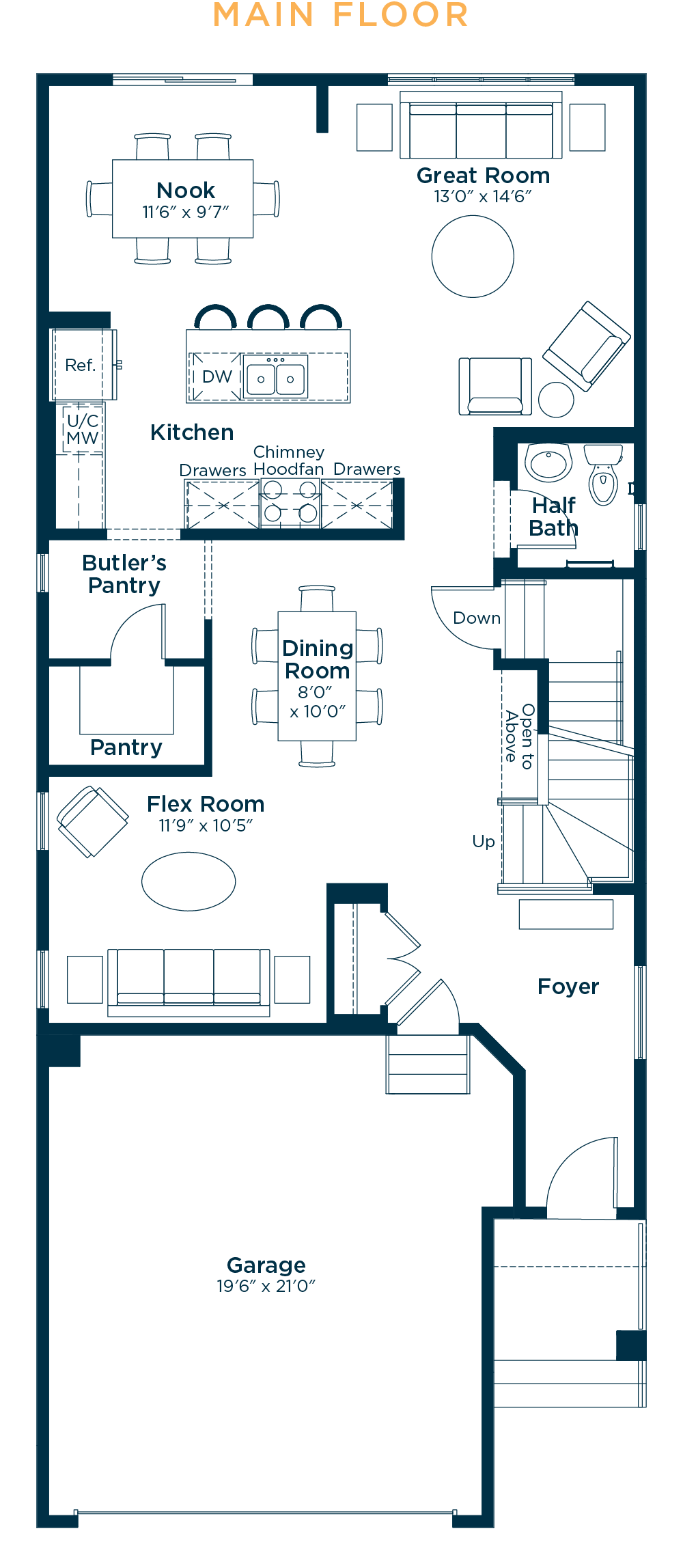 This floorplan represents one version of this home and measurements are approximate. The square footage, measurements and layout may vary back on the elevation and/or lot. All elevations shown are artist’s concept only and will vary by community. The builder reserves the right to make modifications or substitutions should they be necessary. All plans, options, dimensions, specifications, materials and drawings are subject to change without notice. E.&O.E