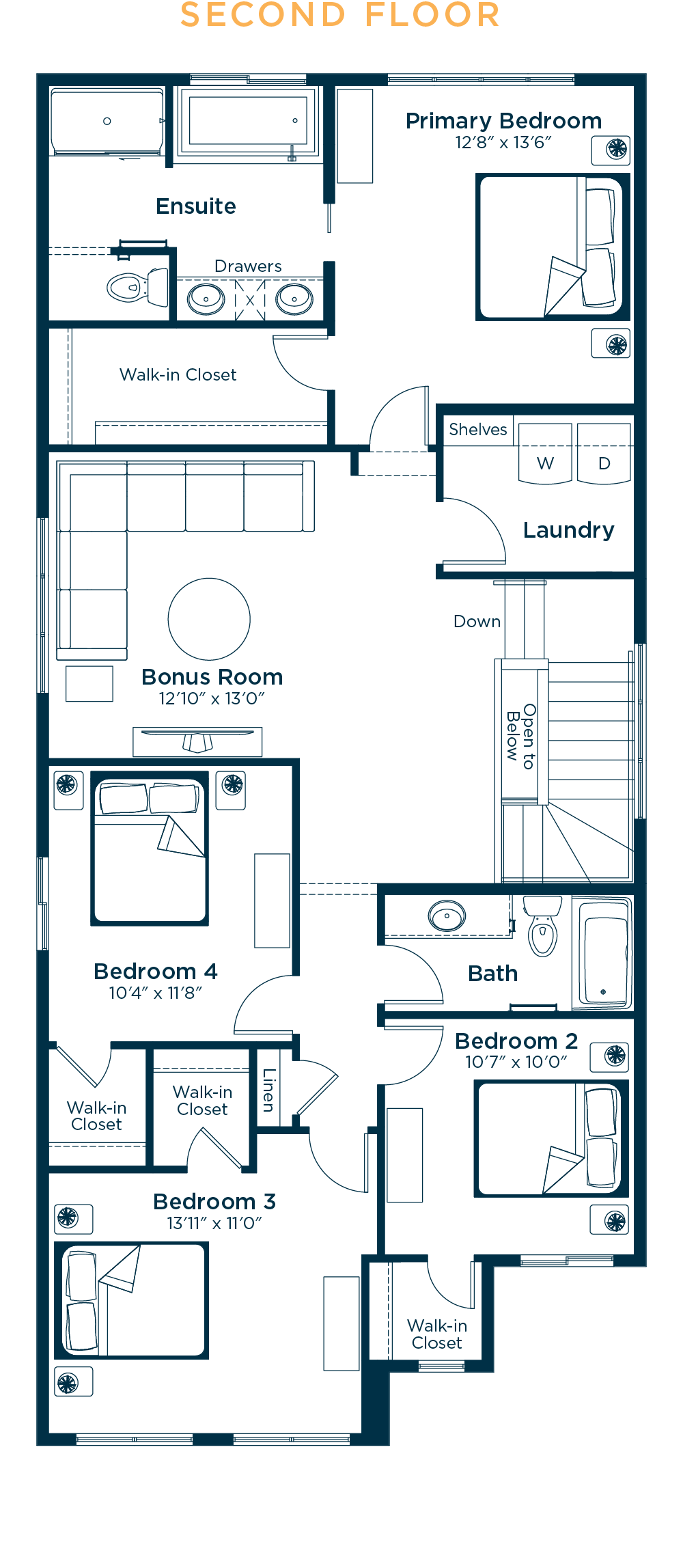 Flawless in design and function, the Hawthorne is the perfect choice for today’s families. Entertain with ease in your great room and spacious kitchen, complete with a central island and walk-in pantry. Gather with friends in the dining nook or around the great room fireplace. Set up your office or kids’ play area in the front flex room. Upstairs, enjoy the flexibility of a central bonus room that separates the large primary bedroom retreat from the other three bedrooms, full bath and laundry room.