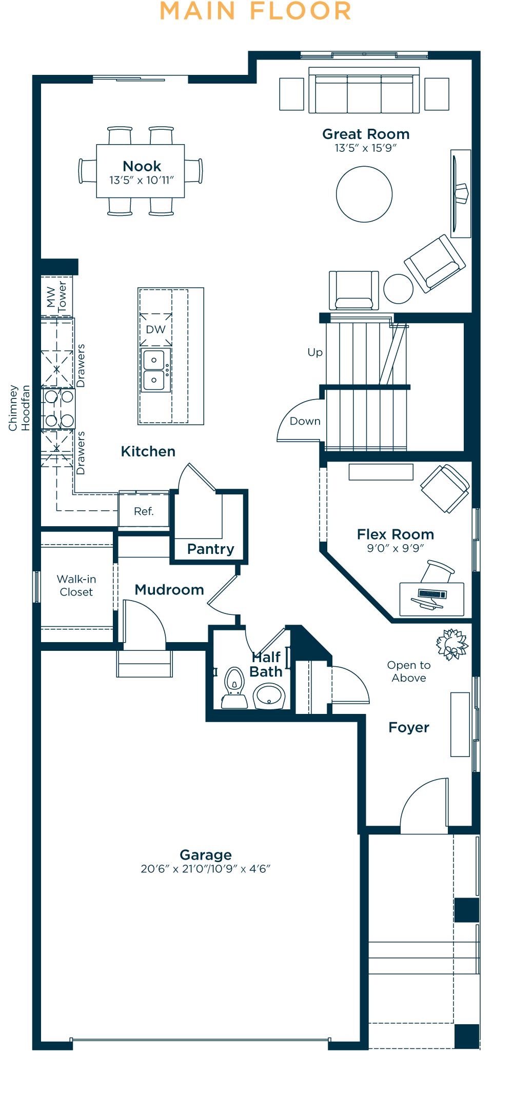 This floorplan represents one version of this home and measurements are approximate. The square footage, measurements and layout may vary back on the elevation and/or lot. All elevations shown are artist’s concept only and will vary by community. The builder reserves the right to make modifications or substitutions should they be necessary. All plans, options, dimensions, specifications, materials and drawings are subject to change without notice. E.&O.E