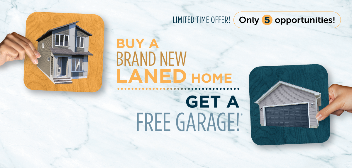 Looking for the perfect home in Edmonton? Now’s your chance! When you purchase a brand new laned home in two communities in Edmonton on select lots, you’ll receive a FREE garage—a fantastic addition to your new home at no extra cost.