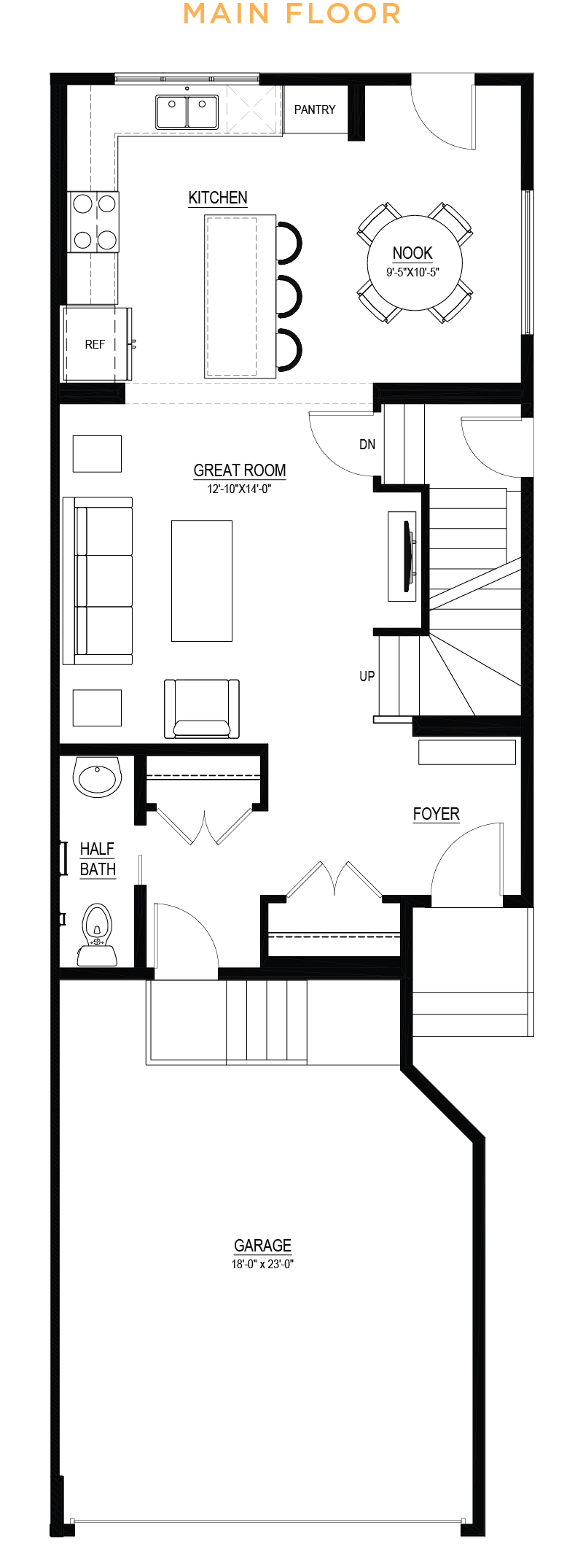 - 9’ main floor ceiling