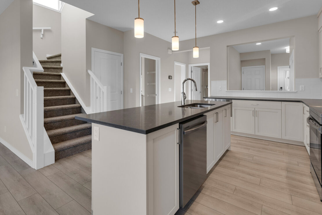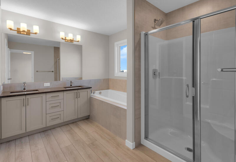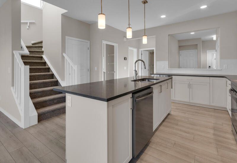 With the Collingwood, entertaining becomes effortless and stylish. From the moment you step inside, you’re greeted by a main floor bedroom and full bathroom, an ideal setup for guests or multi-generational living. Designed with both function and flair in mind, this thoughtfully pre-planned home boasts a spacious main floor anchored by a stunning Level 2 kitchen. Enjoy an upgraded fridge, gas cooktop, and a dedicated spice kitchen for all your culinary adventures, while the sunlit dining nook creates the perfect backdrop for memorable meals. Upstairs, an elegant H-cut wood spindled railing guides you to a dramatic vaulted bonus room, strategically placed to separate the upgraded primary suite from three additional bedrooms. The basement is thoughtfully roughed in for a future two-bedroom suite, complete with an exterior side entry, making future development simple and seamless.