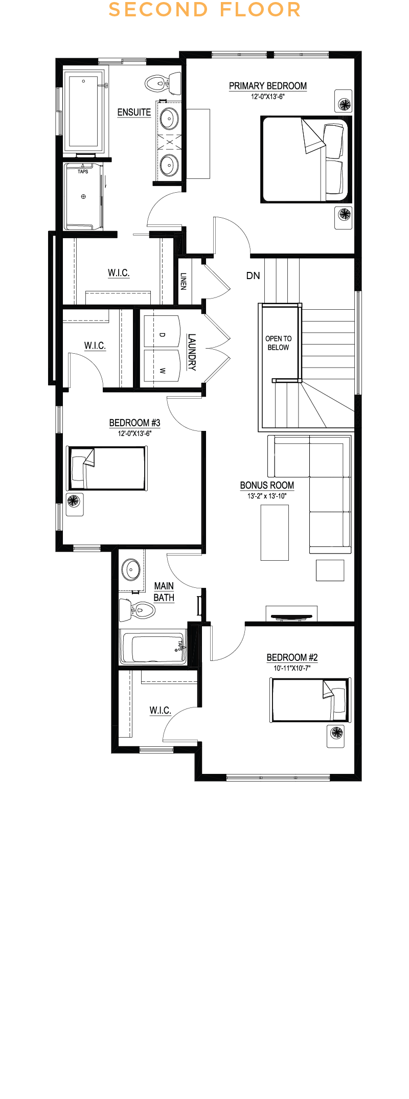 - 1¼” quartz countertops in kitchen, main bath and ensuite