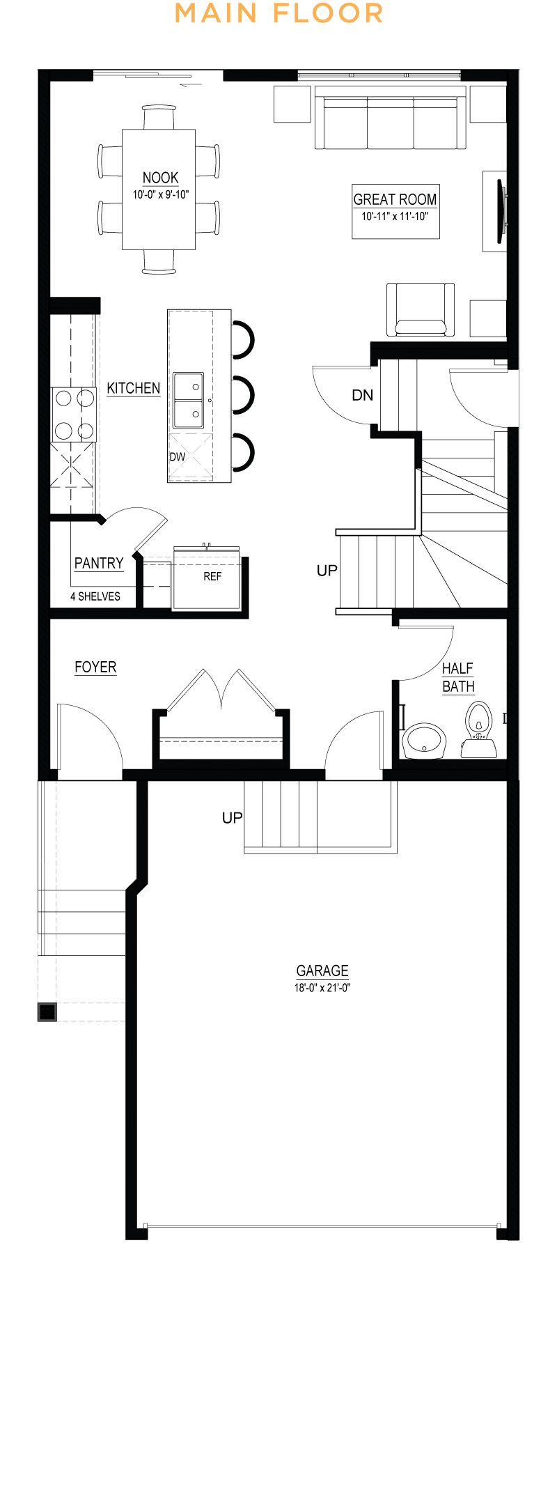 - Level 1 kitchen upgrade complete with crown moulding, island extension, 42” upper cabinets, and one pots and pans drawer