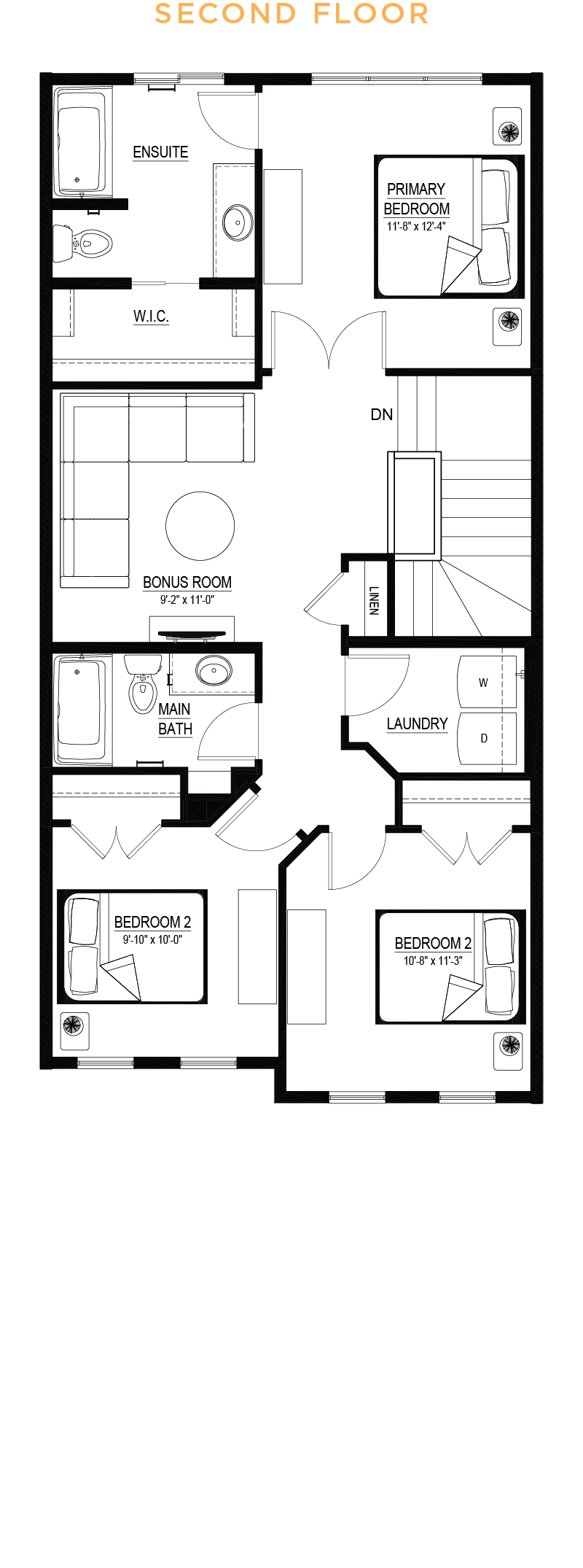 - ¾” quartz countertops in kitchen, main bath and ensuite
