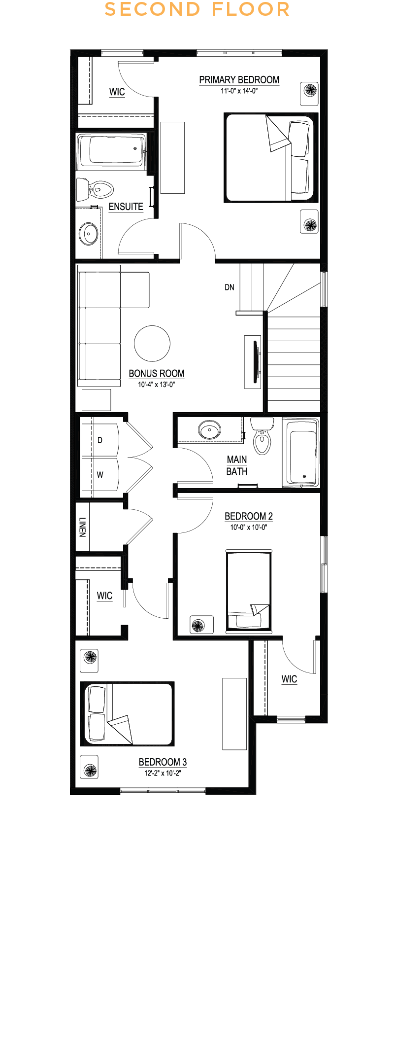 - 1¼” quartz countertops in kitchen, main bath and ensuite