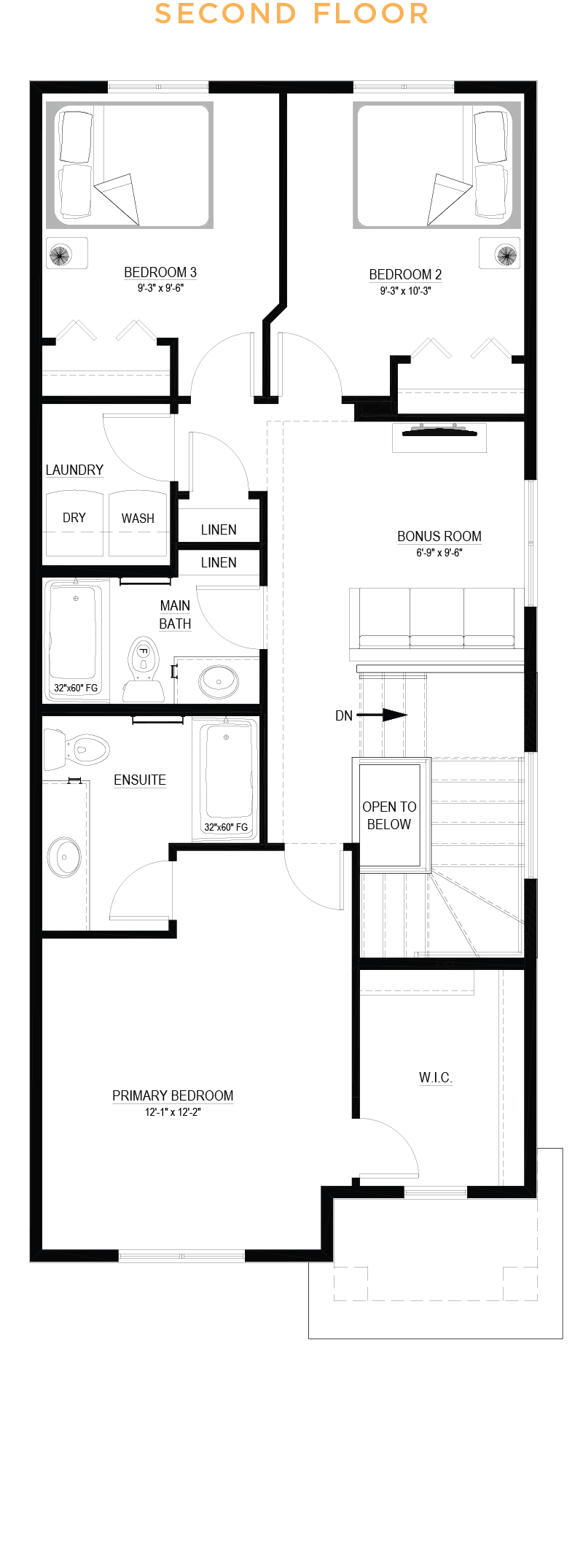 - Vaulted bonus room ceiling