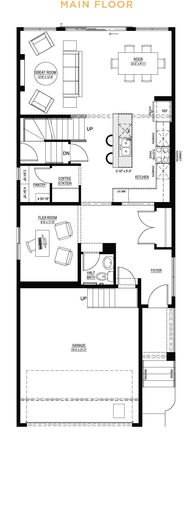 This floorplan represents one version of this home and measurements are approximate. The square footage, measurements and layout may vary back on the elevation and/or lot. All elevations shown are artist’s concept only and will vary by community. The builder reserves the right to make modifications or substitutions should they be necessary. All plans, options, dimensions, specifications, materials and drawings are subject to change without notice. E.&O.E