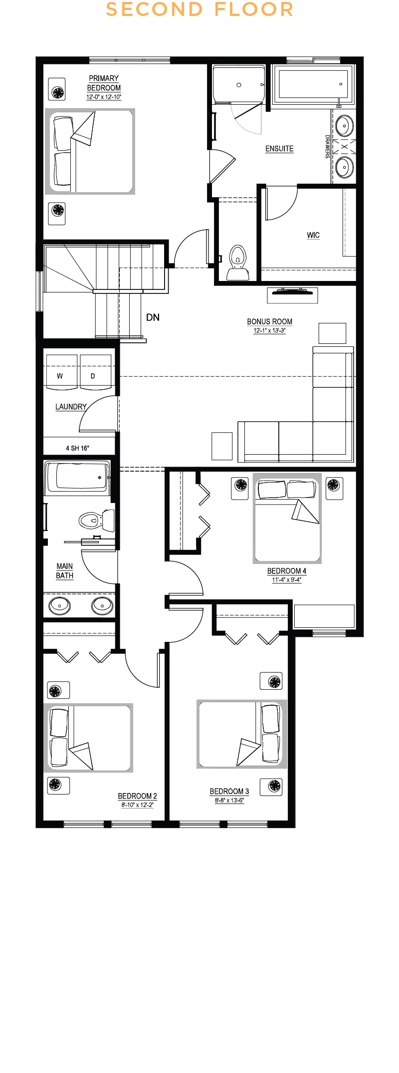 With the Collingwood, entertaining comes effortlessly. The thoughtfully designed main floor showcases an expansive layout, a level 2 kitchen with an upgraded fridge and electric range, and a sunlit dining nook framed by oversized windows. In the great room, a full-height electric fireplace adds warmth and style, creating the perfect gathering space year-round. Upstairs, a versatile bonus room, an inviting retreat that also provides separation between the upgraded primary suite and the additional three bedrooms, ensuring comfort and privacy for the whole family.