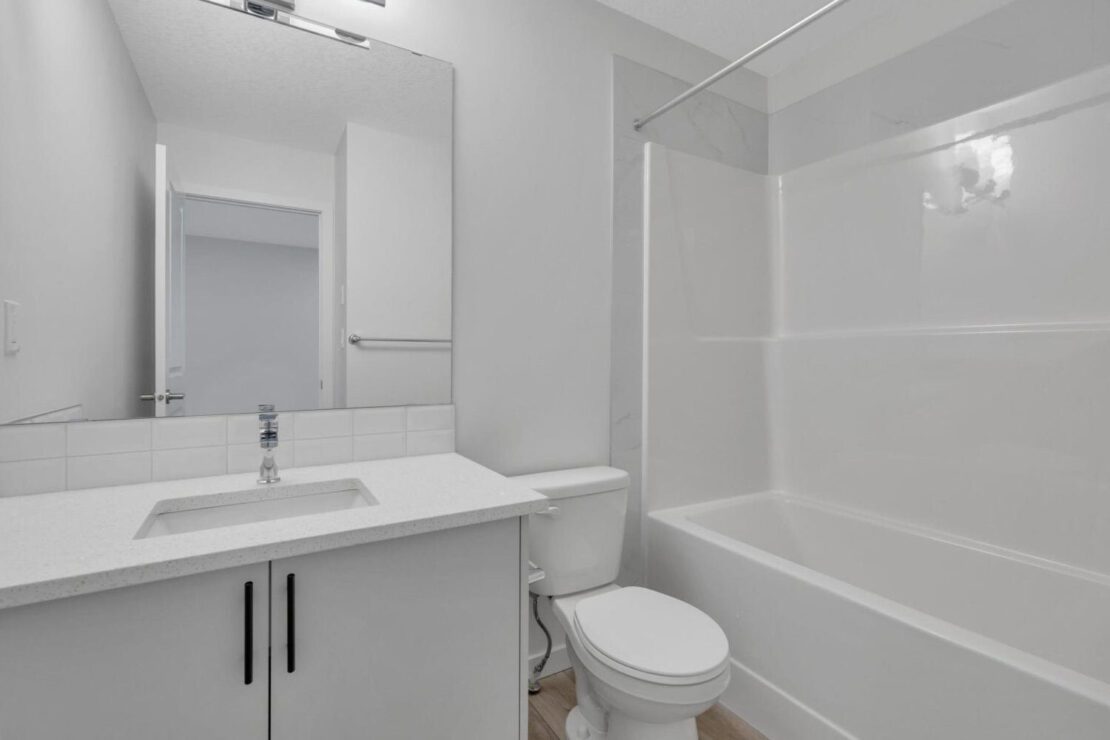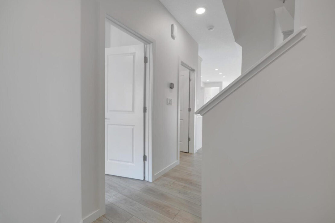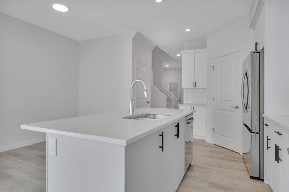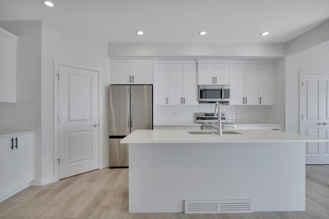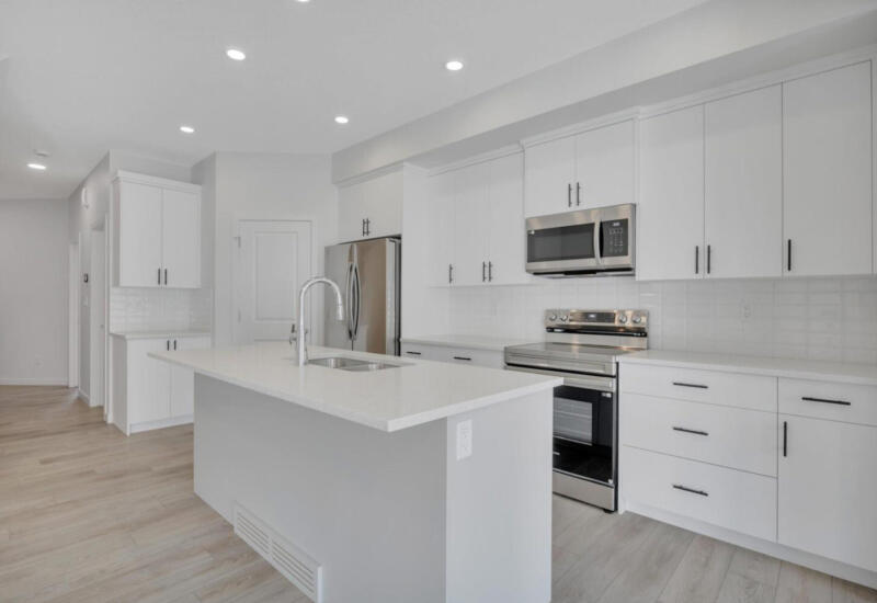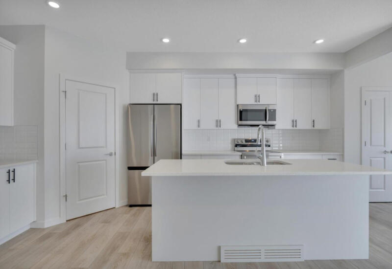 The Sienna is a bright, open-concept laned home thoughtfully designed with families in mind. The main floor is both flexible and inviting, perfect for entertaining, with a central Level 1 kitchen featuring crown moulding, an island extension, 42" upper cabinets, a pots-and-pans drawer, and generous seating that flows seamlessly into the great room. A convenient main-floor bedroom and full bathroom make this layout ideal for multi-generational living or welcoming guests. Upstairs, the cozy bonus room and laundry create a functional hub that separates the additional bedrooms from the spacious primary suite, offering both comfort and privacy. For even more potential, the exterior side entry leads to a 9' basement that’s ready to be developed into a full legal suite or transformed into the ultimate recreation space for family fun.