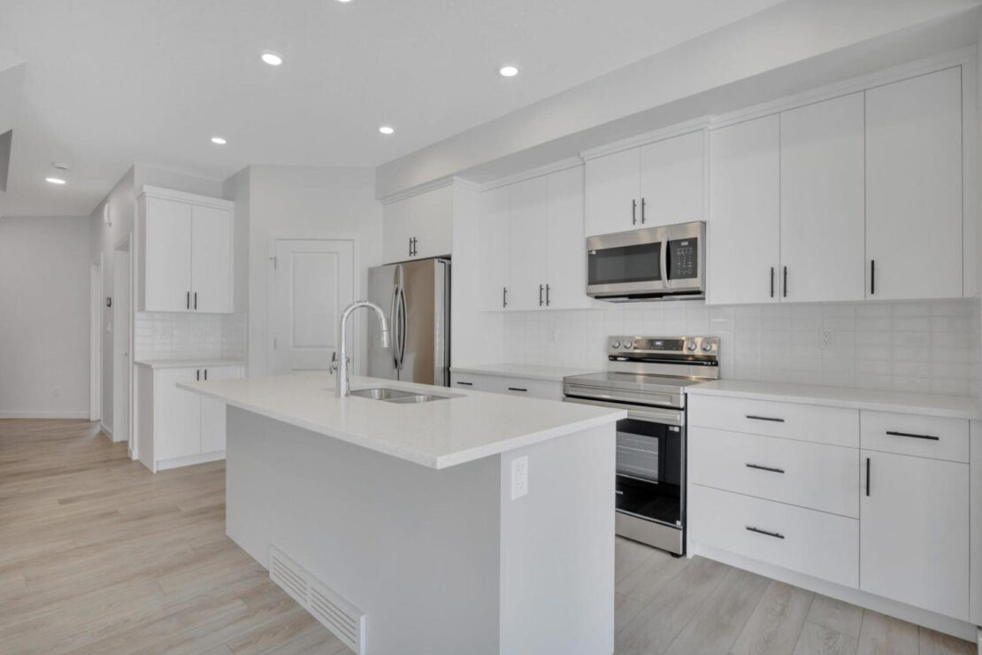 - 1¼” quartz countertops in kitchen, main bath and ensuite