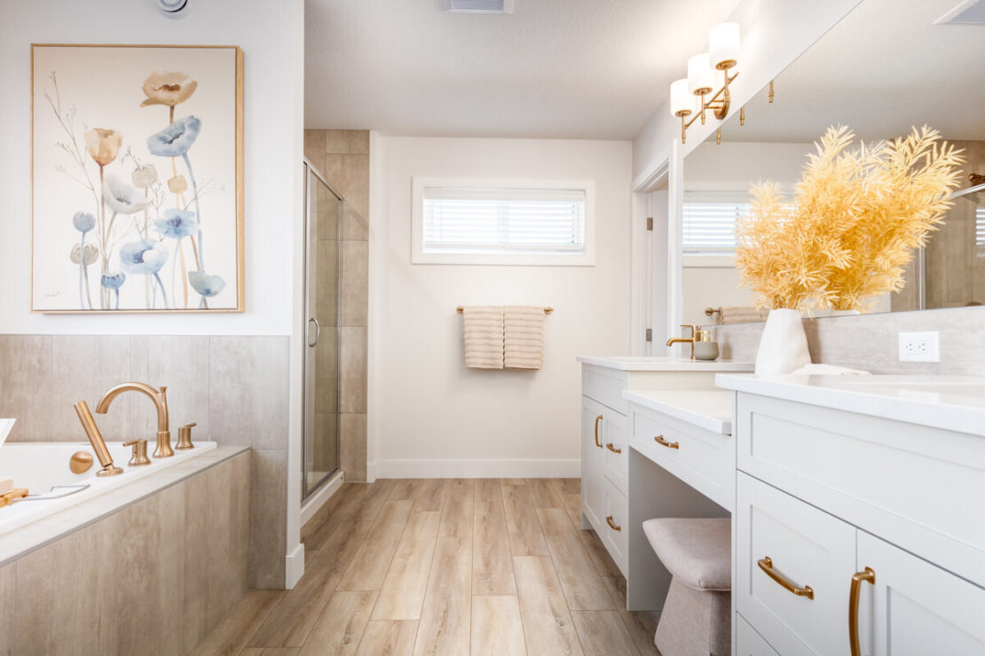 - ¾” quartz countertops in kitchen, ensuite and all baths