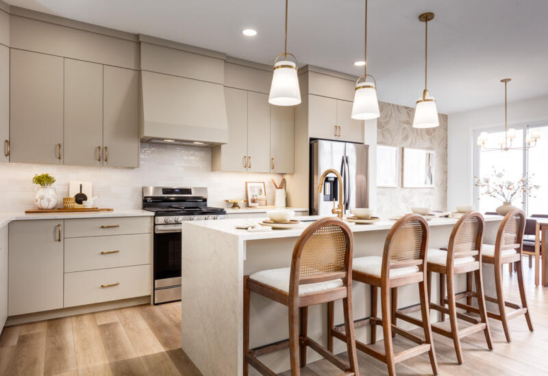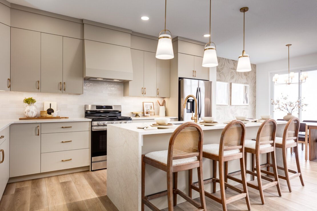 - 1 ¼” granite or quartz countertops in kitchen, ensuite and all baths