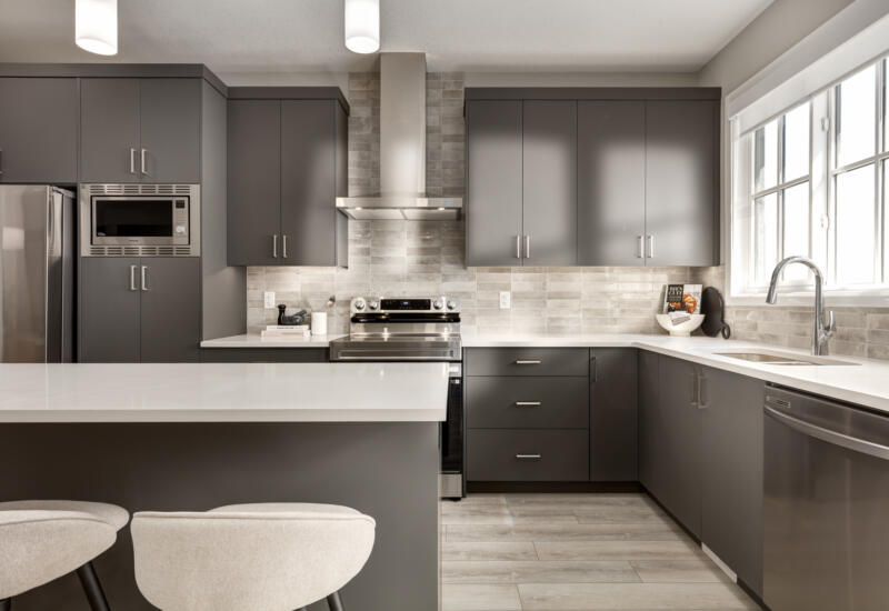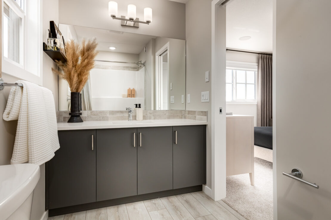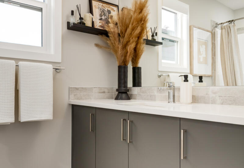 - 1 ¼” granite or quartz countertops in kitchen, ensuite and all baths
