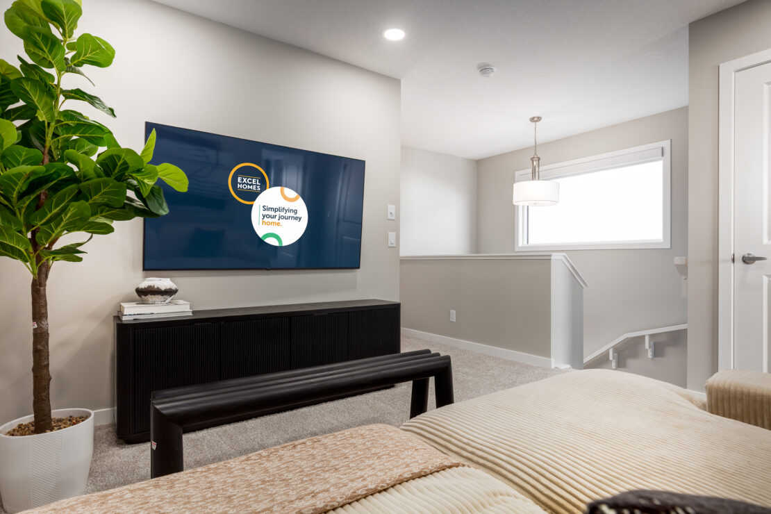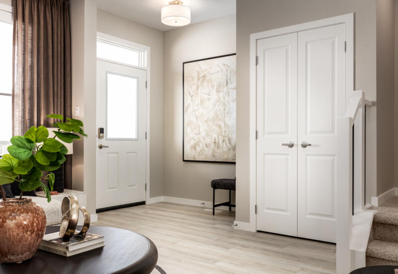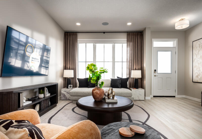 The Nova showcases a spacious, open-concept layout. Upon entering, you're welcomed by a generous foyer that flows into a versatile great room, perfect for both entertaining and unwinding. The main floor also features a central dining nook and an upgraded kitchen with a large island and a walk-in pantry, designed to bring style and functionality together. A striking black spindle railing guides you upstairs, where you'll find three well-sized bedrooms, each with ample closet space. A central bonus room provides an ideal space for movie nights or a play area, while the conveniently located second-floor laundry room adds everyday practicality. Tucked away for maximum privacy, the primary suite offers a serene escape with a luxurious ensuite and a spacious walk-in closet. This home also includes a separate side entrance to the basement, which is roughed in for a one-bedroom suite with its own laundry, making future development simple and seamless. A detached garage completes the home, adding both convenience and curb appeal.