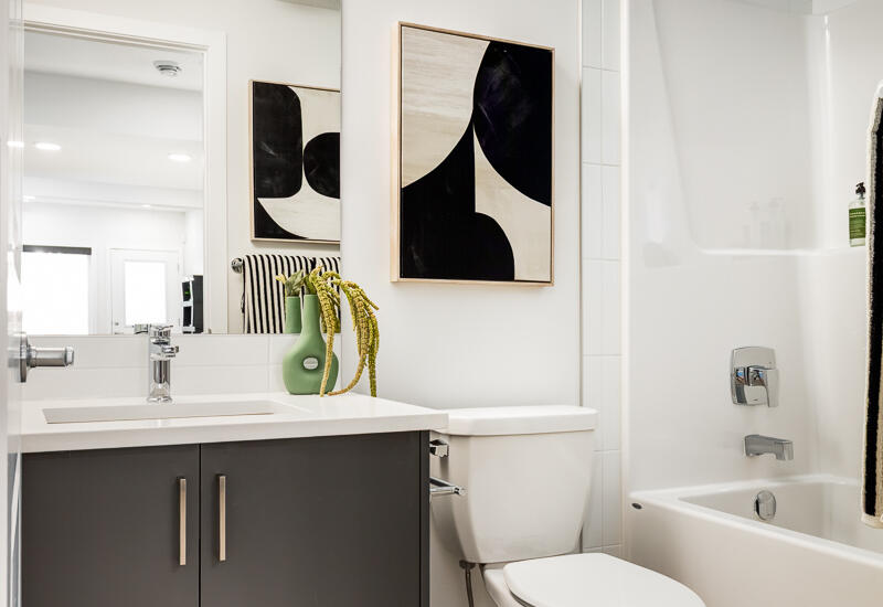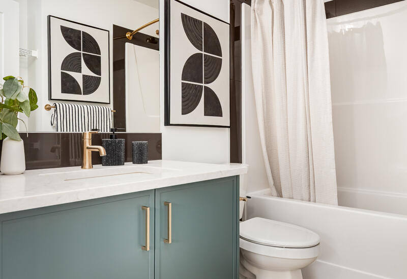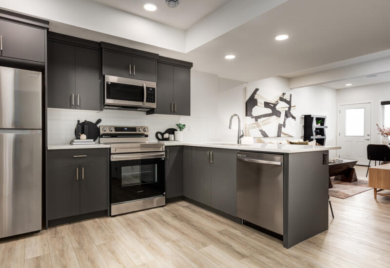 - 1 ¼” granite or quartz countertops in kitchen, ensuite and all baths