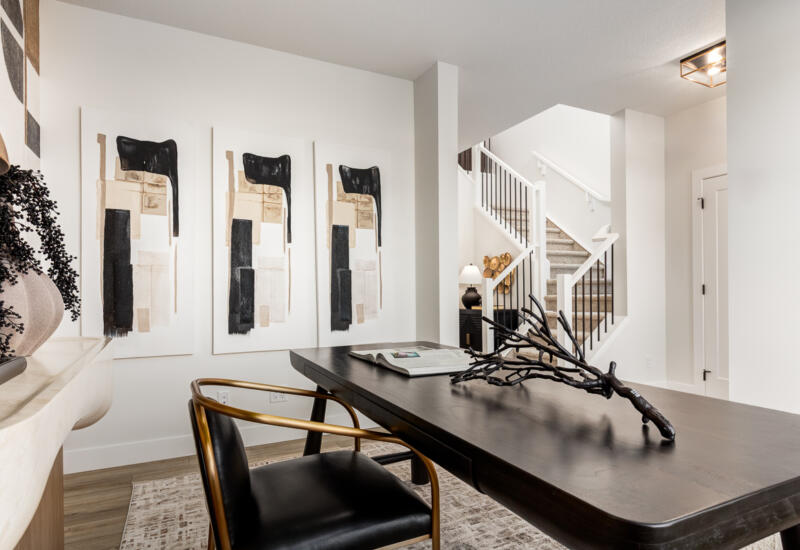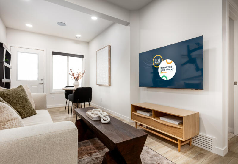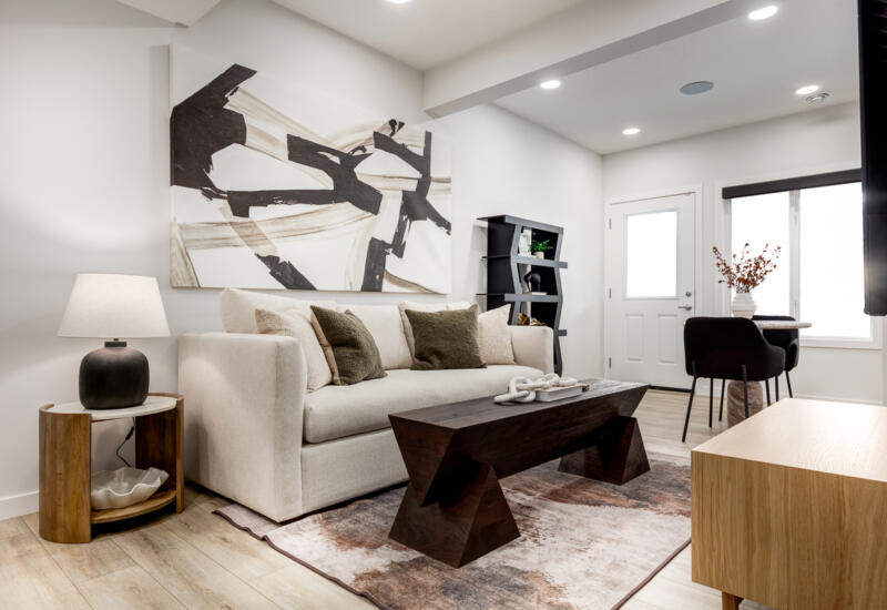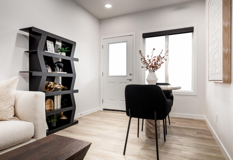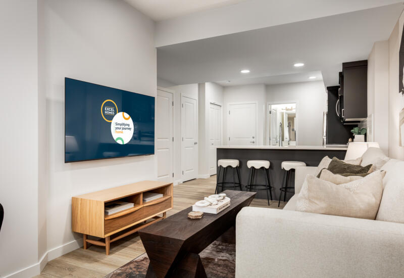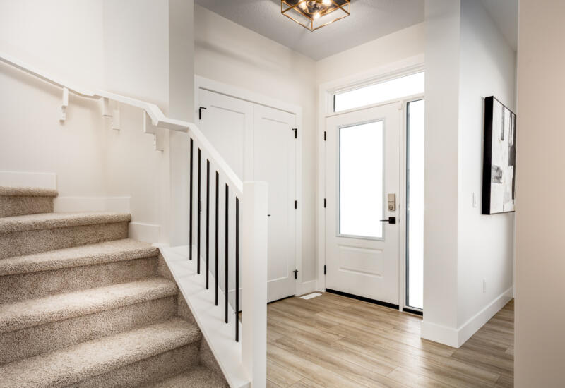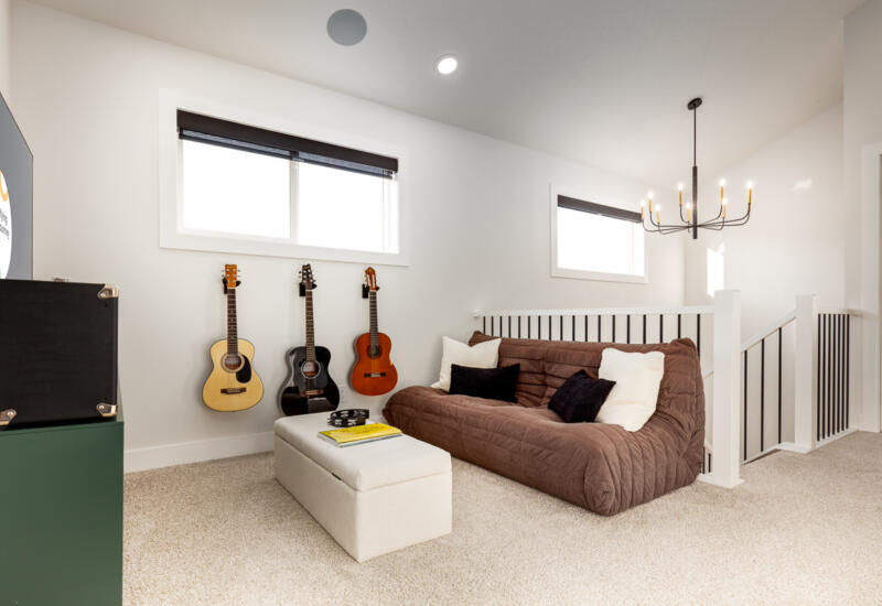 Thoughtfully designed for modern family living, the Bellevue is a bright and open two-storey laned show home offering 1,794 sq. ft. of style and functionality. A spacious foyer and versatile flex room greet you at the front entrance, setting the tone for the home’s adaptable layout. The main floor features a gourmet kitchen with upgraded appliances, a striking waterfall island, and a full-height electric fireplace in the great room, perfect for both everyday living and entertaining. Upstairs, a central bonus room provides additional living space, while the luxurious primary suite includes a walk-in closet and a spa-inspired ensuite with dual sinks. Two additional bedrooms, a convenient laundry room, and a second full bathroom complete the upper floor. For even more versatility, the fully developed walkout basement includes a self-contained one-bedroom suite, ideal for extended family or rental income.