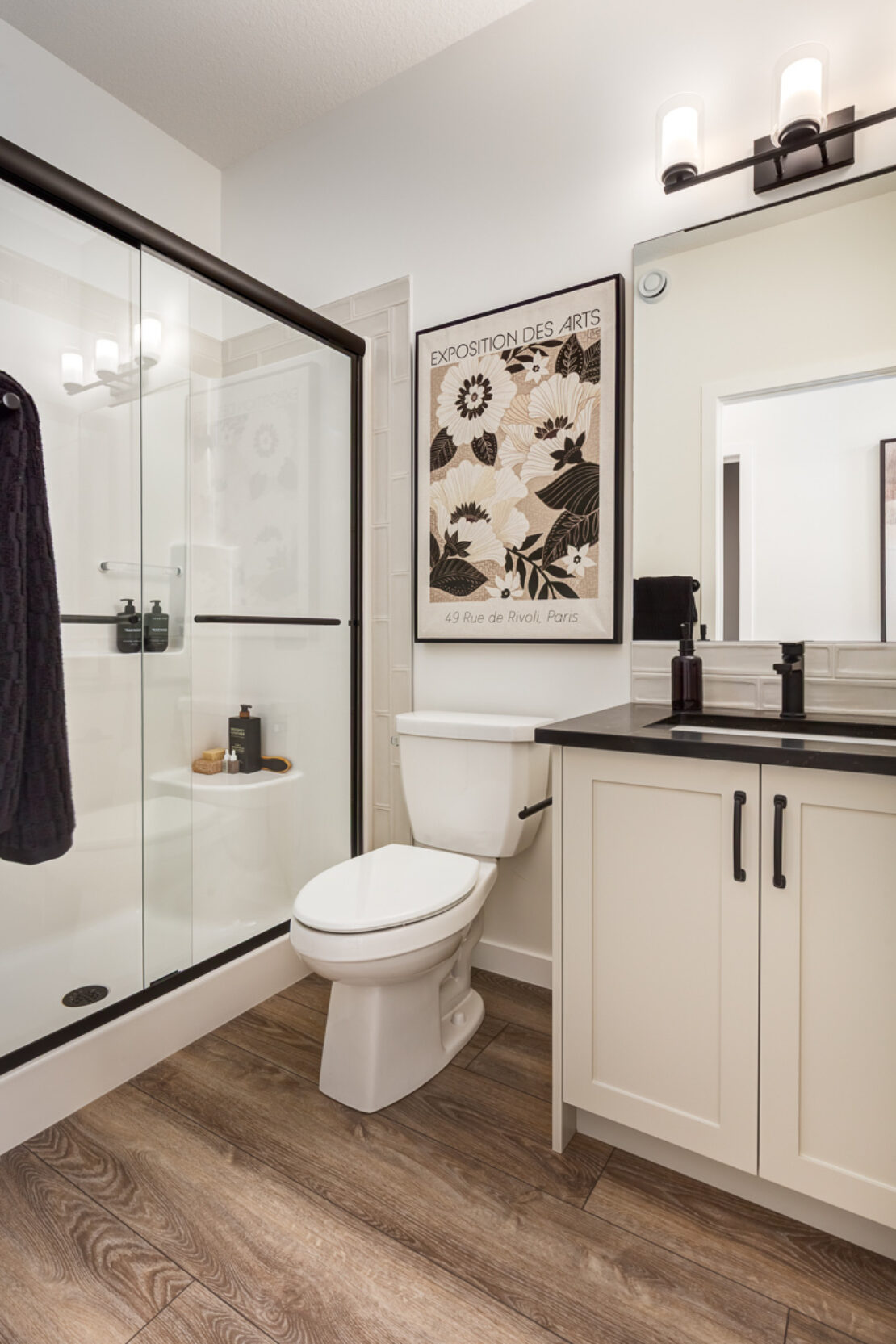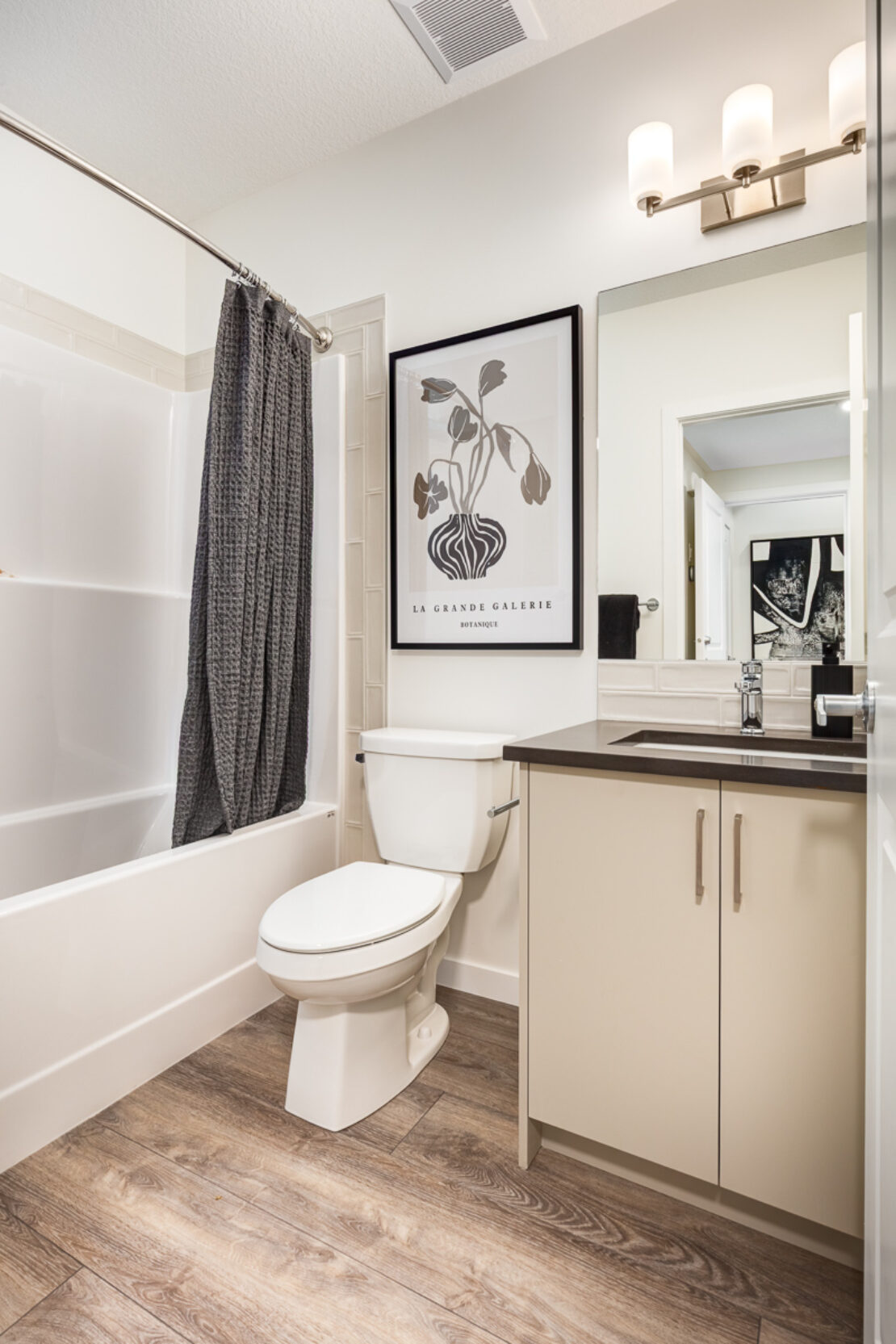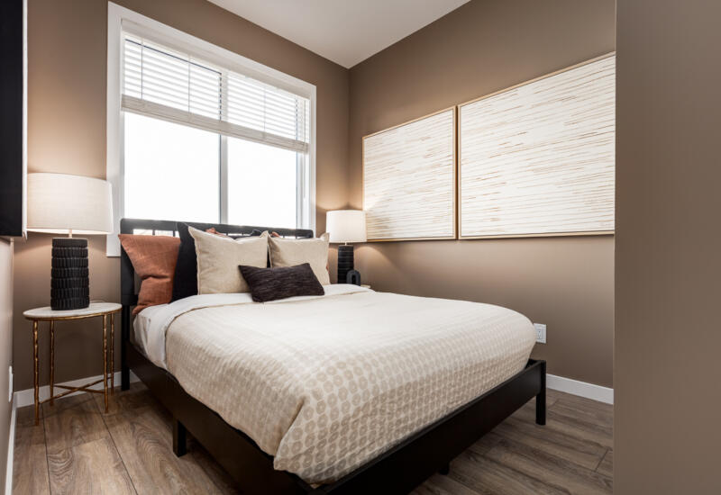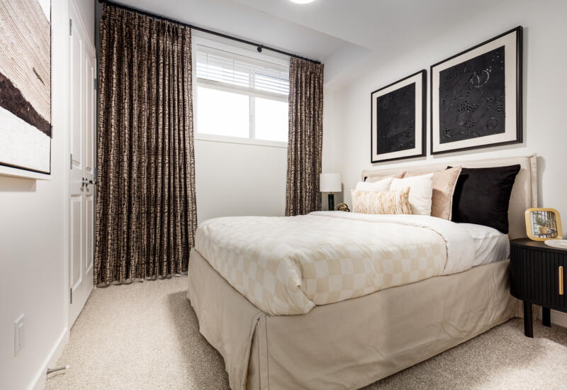 The Cohen boasts an open-concept layout that seamlessly connects the kitchen, dining, and living areas, making it ideal for entertaining or spending time with family. The upgraded kitchen features an L-shape countertop offering plenty of storage space and an island with seating. The living area has large windows that fill the space with natural light and offer views of the front yard. Towards the rear of the home there is a bedroom and full bathroom, perfect for multi-generational living. The primary bedroom is on the second floor and includes a spacious walk-in closet and a luxurious ensuite bathroom. Upstairs, there is a bonus room that separates the two additional bedrooms from the primary suite and has a full bathroom, and a laundry room for easy cleaning. The home showcases a spacious 2-bedroom, 2-bathroom basement suite, with an exterior side entry and separate laundry room for ultimate privacy.