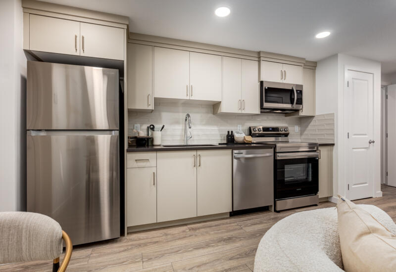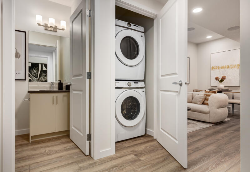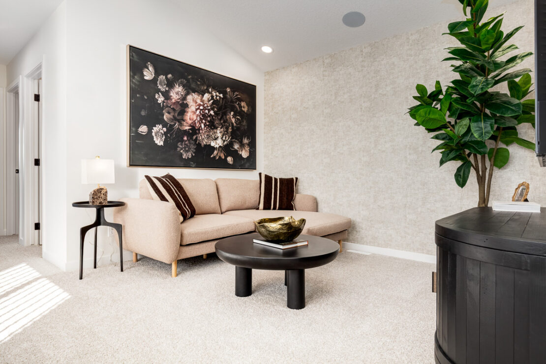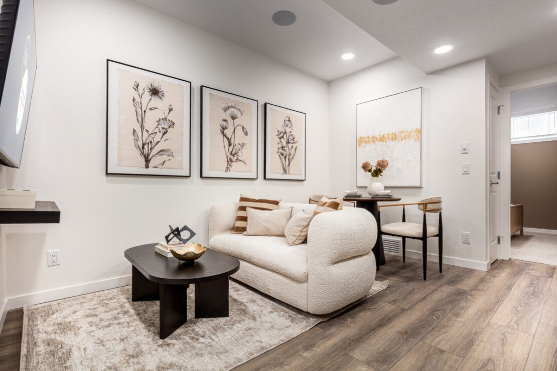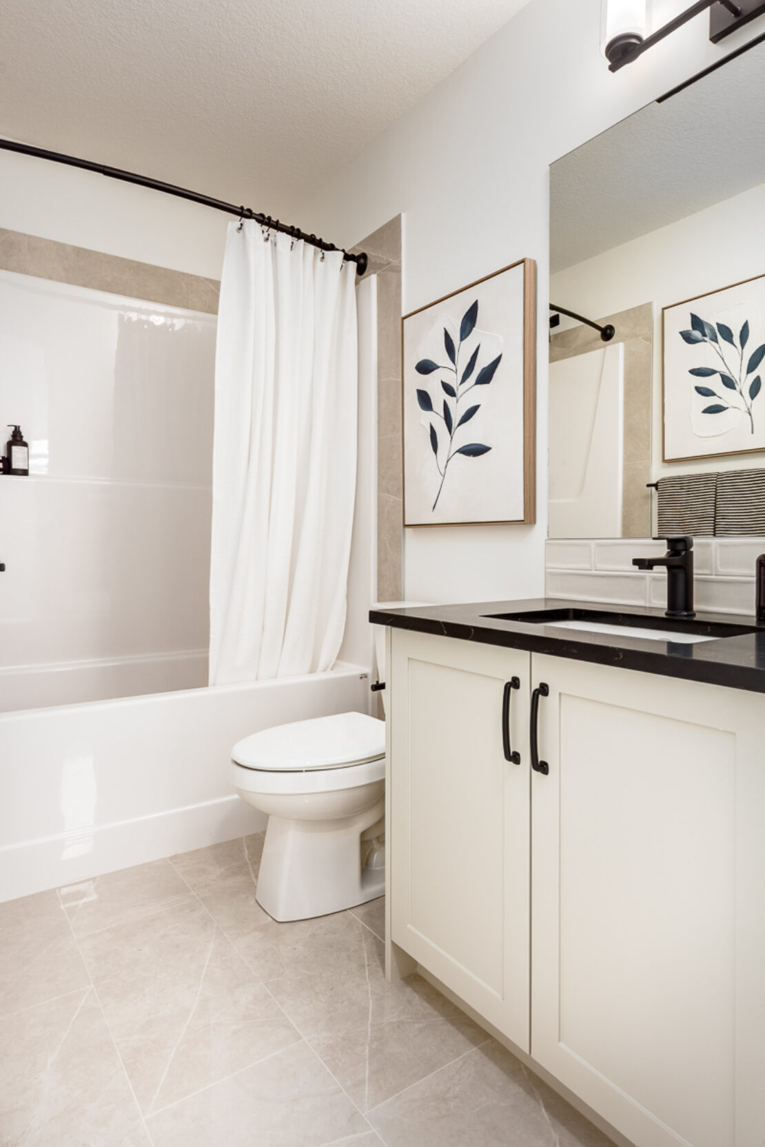 The Cohen boasts an open-concept layout that seamlessly connects the kitchen, dining, and living areas, making it ideal for entertaining or spending time with family. The upgraded kitchen features an L-shape countertop offering plenty of storage space and an island with seating. The living area has large windows that fill the space with natural light and offer views of the front yard. Towards the rear of the home there is a bedroom and full bathroom, perfect for multi-generational living. The primary bedroom is on the second floor and includes a spacious walk-in closet and a luxurious ensuite bathroom. Upstairs, there is a bonus room that separates the two additional bedrooms from the primary suite and has a full bathroom, and a laundry room for easy cleaning. The home showcases a spacious 2-bedroom, 2-bathroom basement suite, with an exterior side entry and separate laundry room for ultimate privacy.
