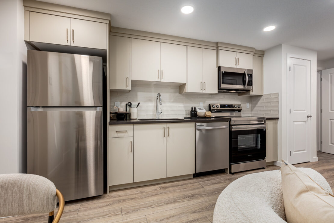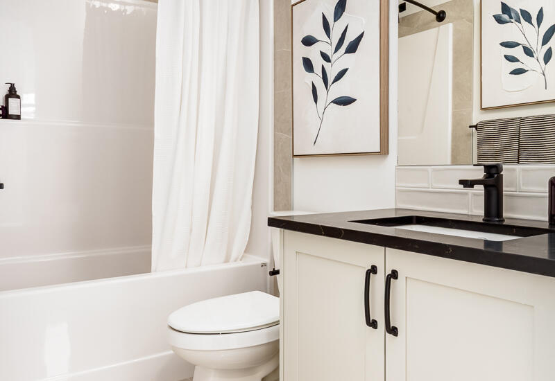 - 1 ¼” granite or quartz countertops in kitchen, ensuite and all baths