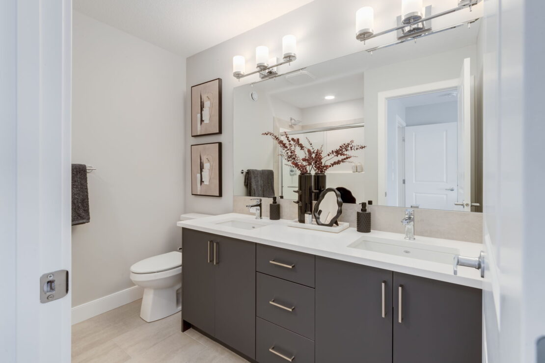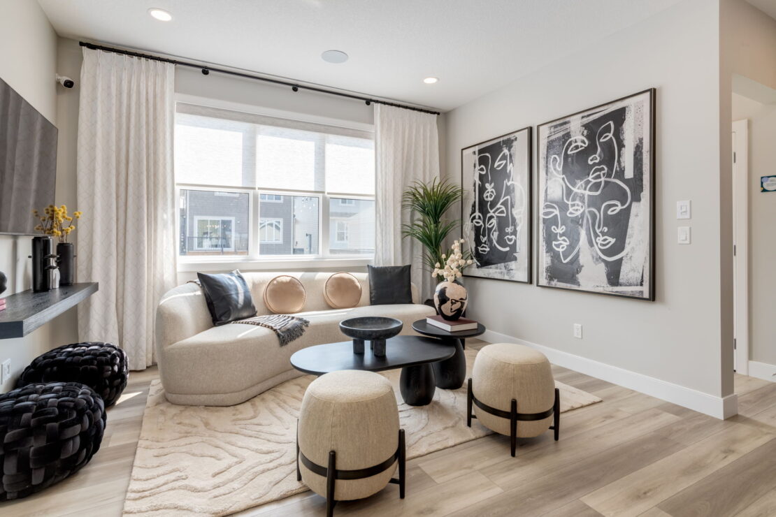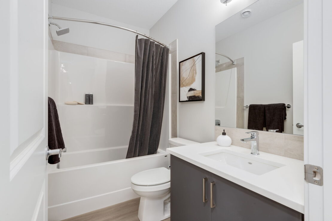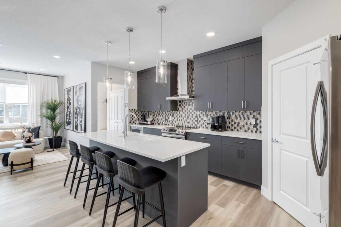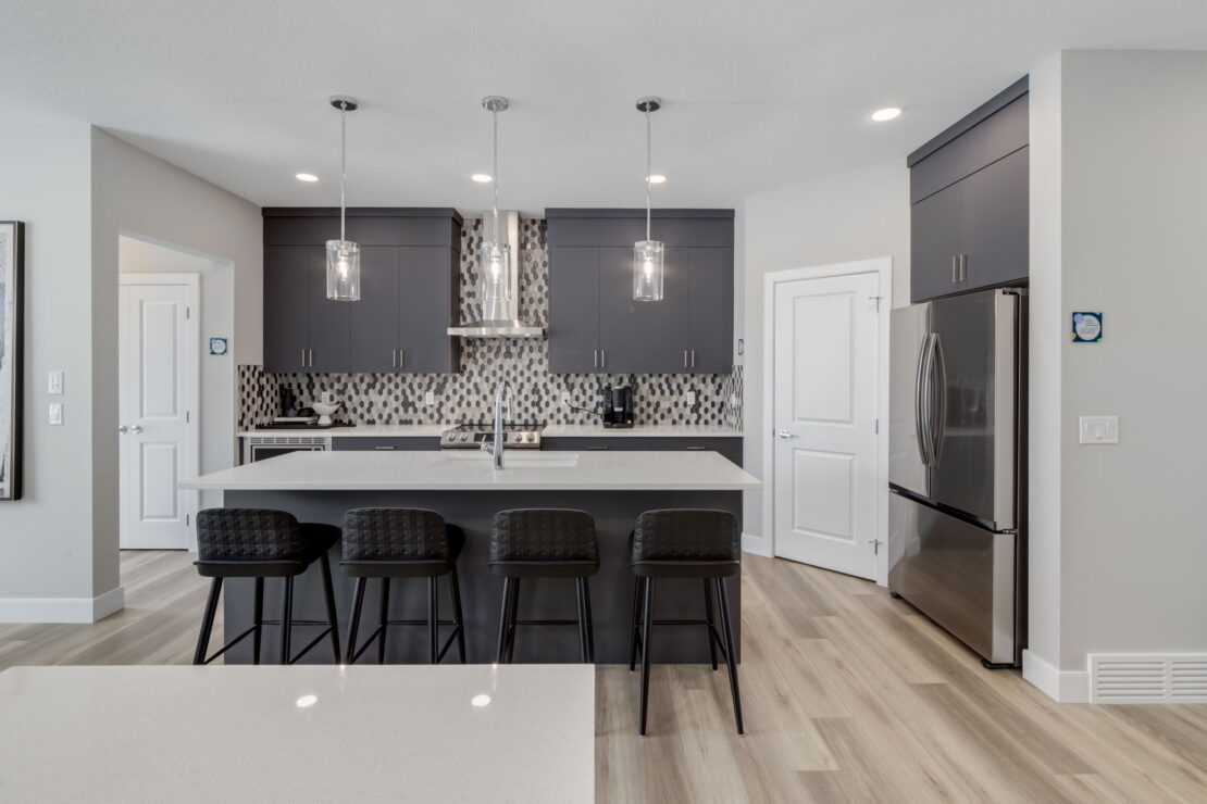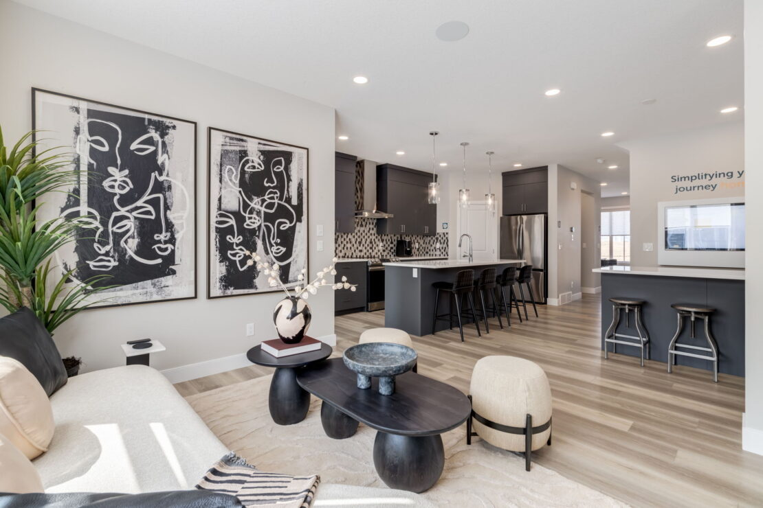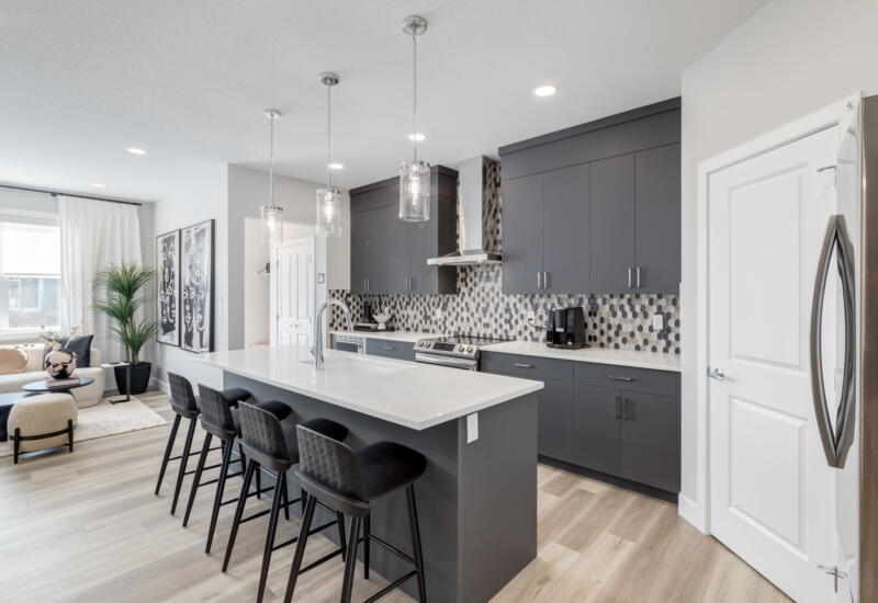 Thoughtfully designed for family living, the Bellevue is a bright and open two-storey laned show home boasting 1,787 square feet to fit your lifestyle. This three-bedroom show home proudly offers a fully upgraded kitchen with a modern appliance package, a full height fireplace on the main floor, a fully loaded laundry room on the cozy second floor, and a fully developed one-bedroom basement suite.