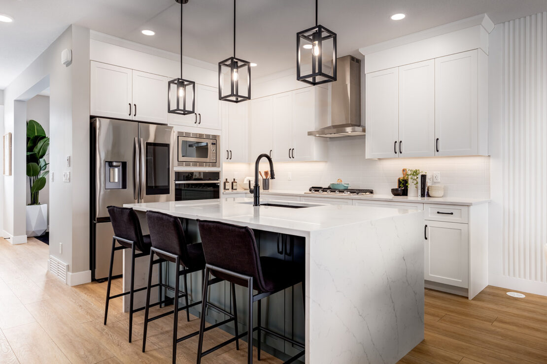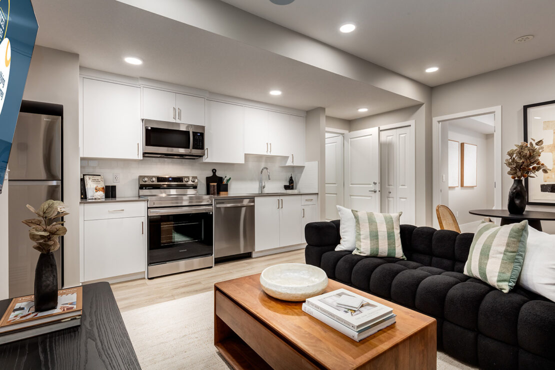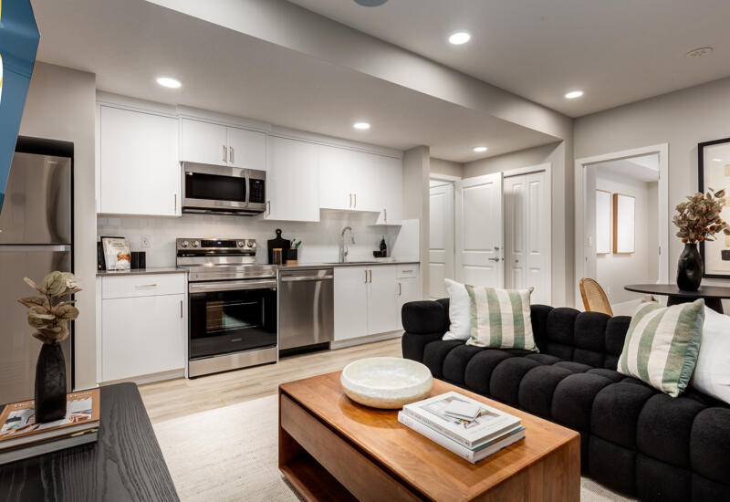The Berkley show home boasts an open-concept layout that seamlessly connects the kitchen, dining, and living areas, making it ideal for entertaining or spending time with family. The kitchen features a modern and gourmet appliance package, an L-shape countertop offering plenty of storage space and an island with seating. The living area has large windows that fill the space with natural light and offer views of the front yard. Towards the rear of the home there is a bright and sunny multi-purpose flex room. Upstairs, the bonus room that separates the two additional bedrooms from the luxurious primary suite. To complete the second floor is another full bathroom, and a conveniently located laundry room. The basement has been developed into a legal two-bedroom suite, which offers more living space, a kitchen, a separate laundry room and 2 additional bathrooms.