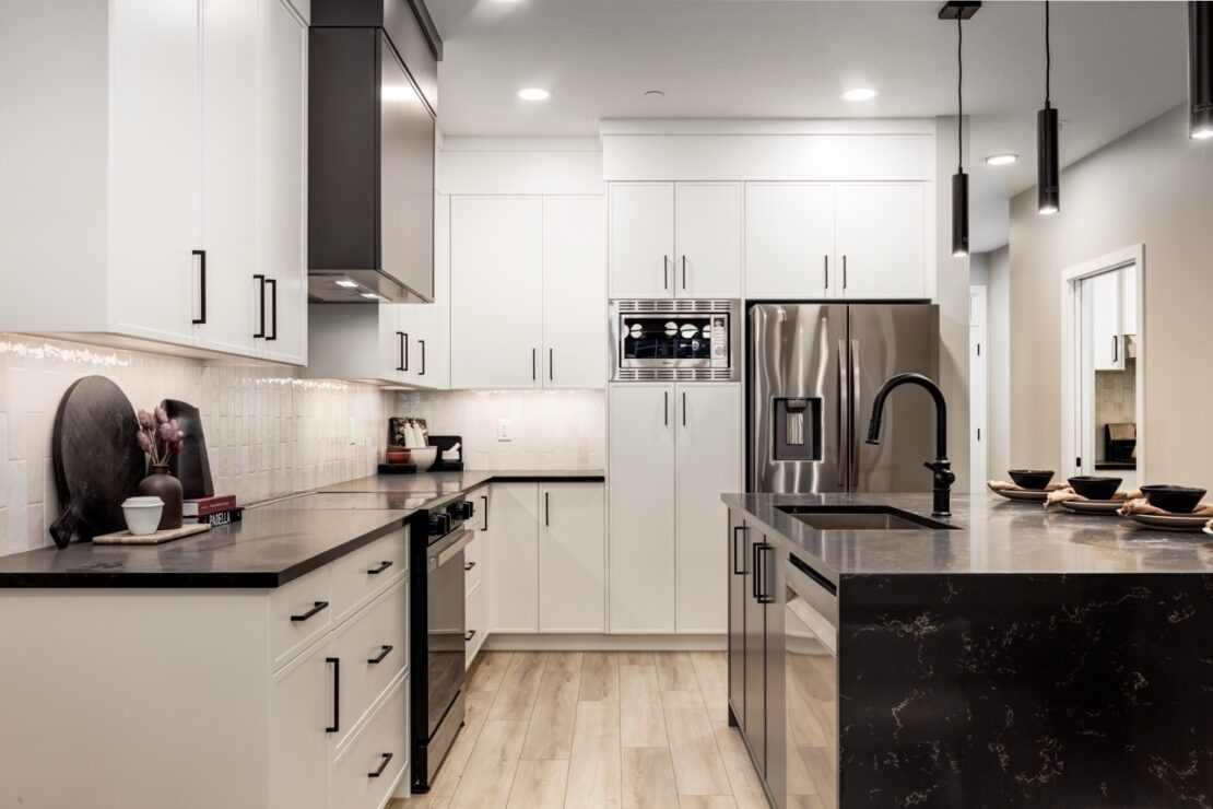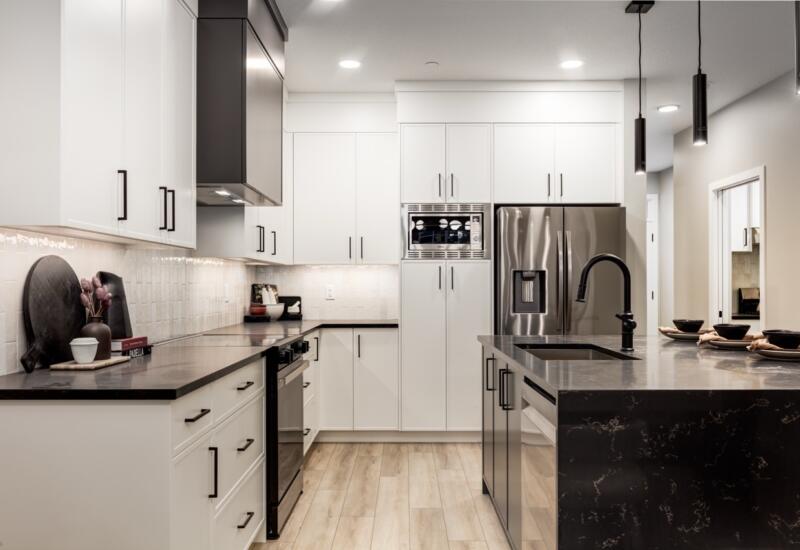 - 1 ¼” granite or quartz countertops in kitchen, ensuite and all baths