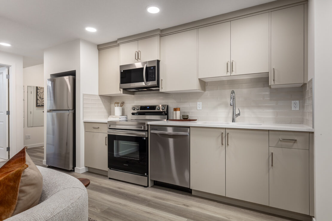 • 1 ¼” granite or quartz countertops in kitchen, ensuite and all baths