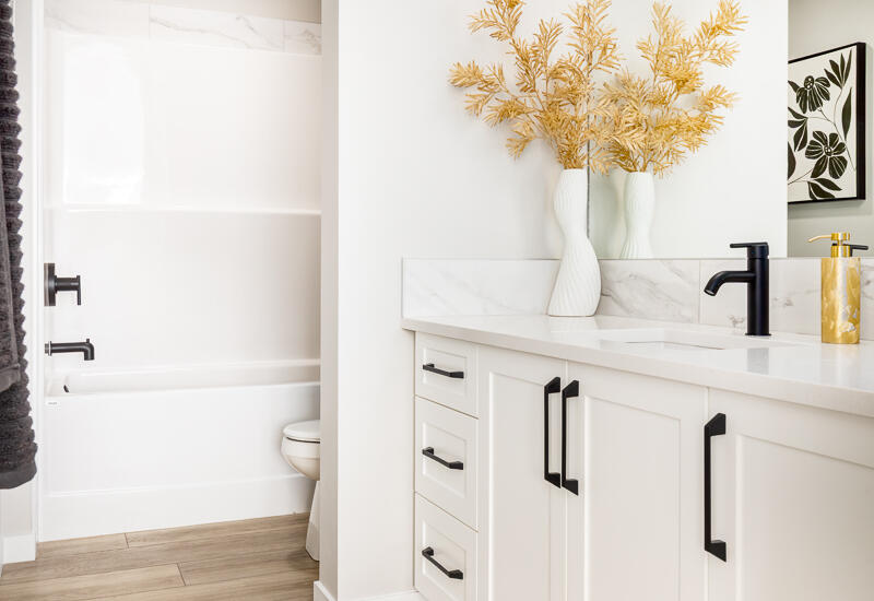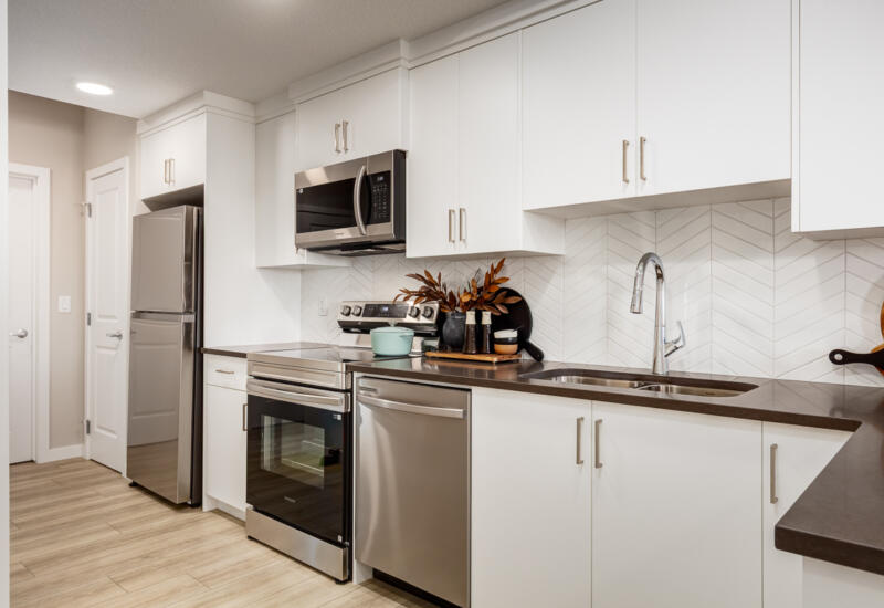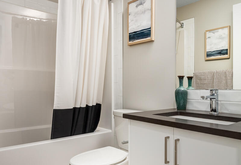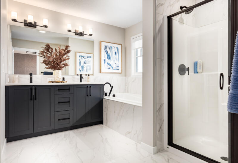 - 1 ¼” granite or quartz countertops in kitchen, ensuite and all baths
