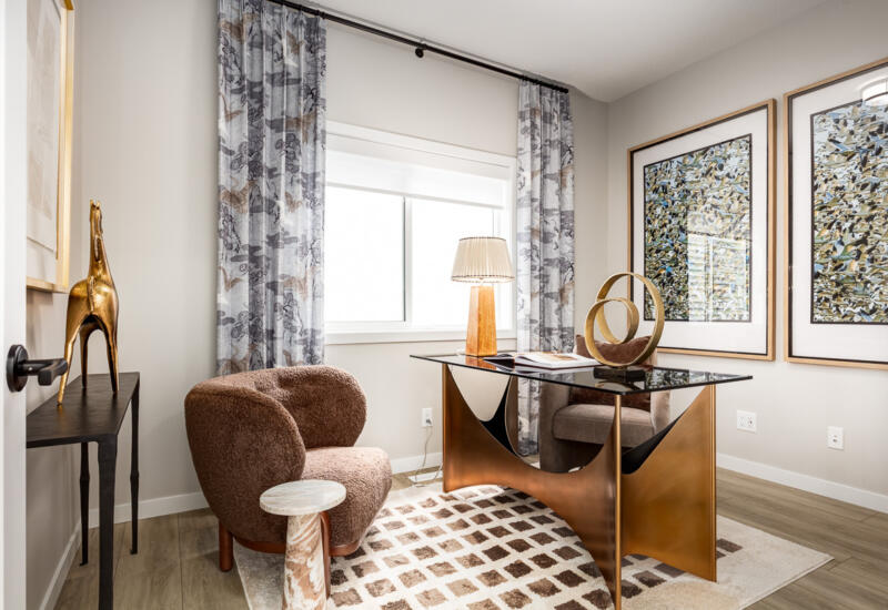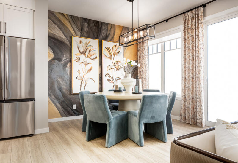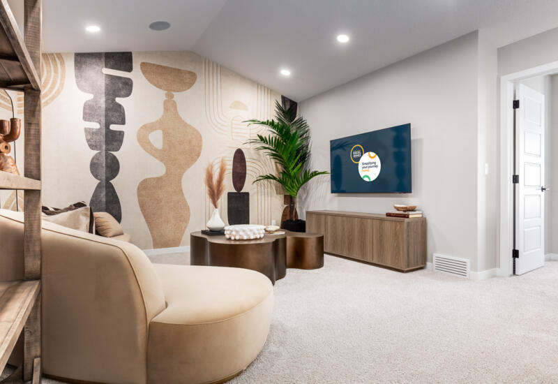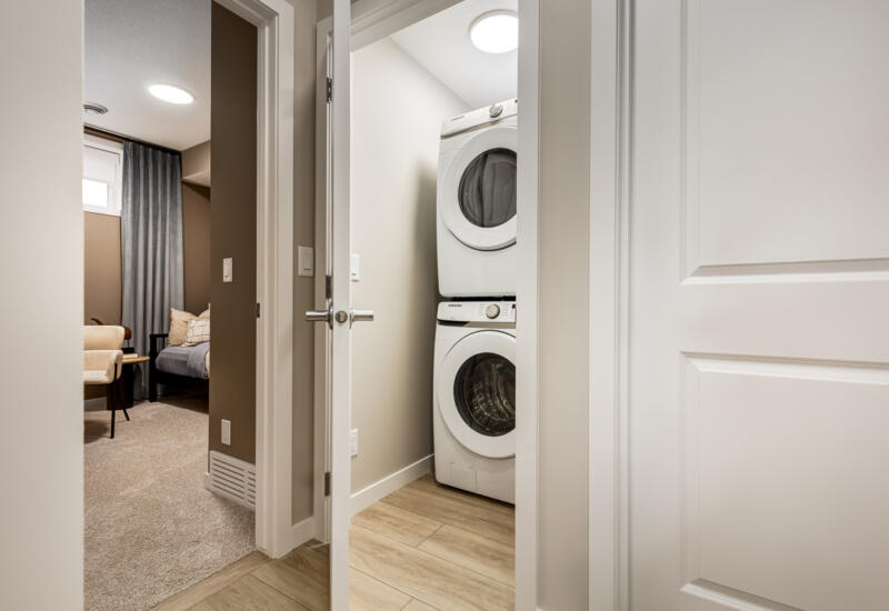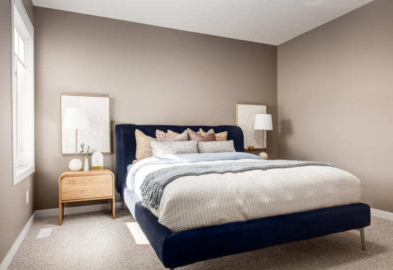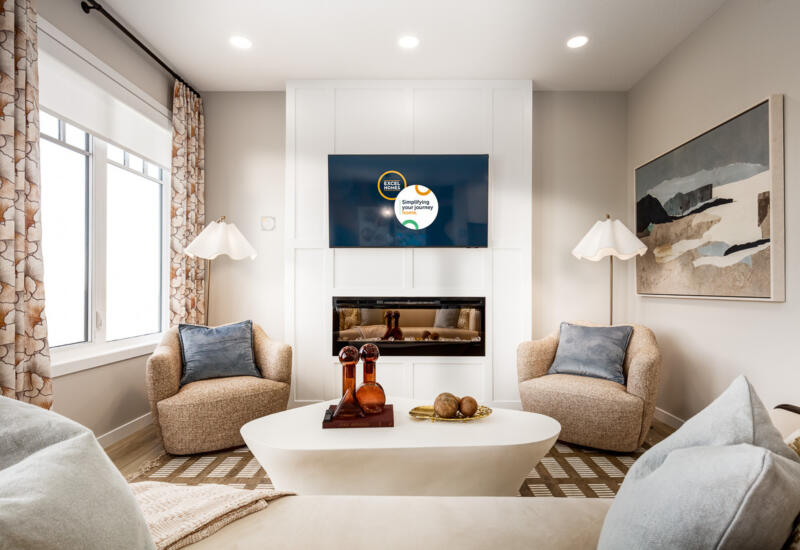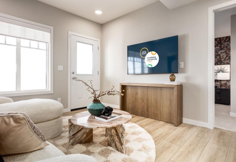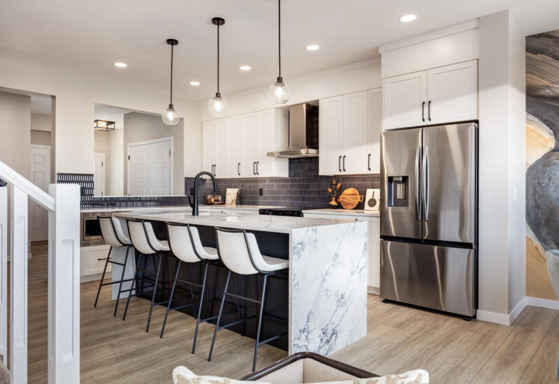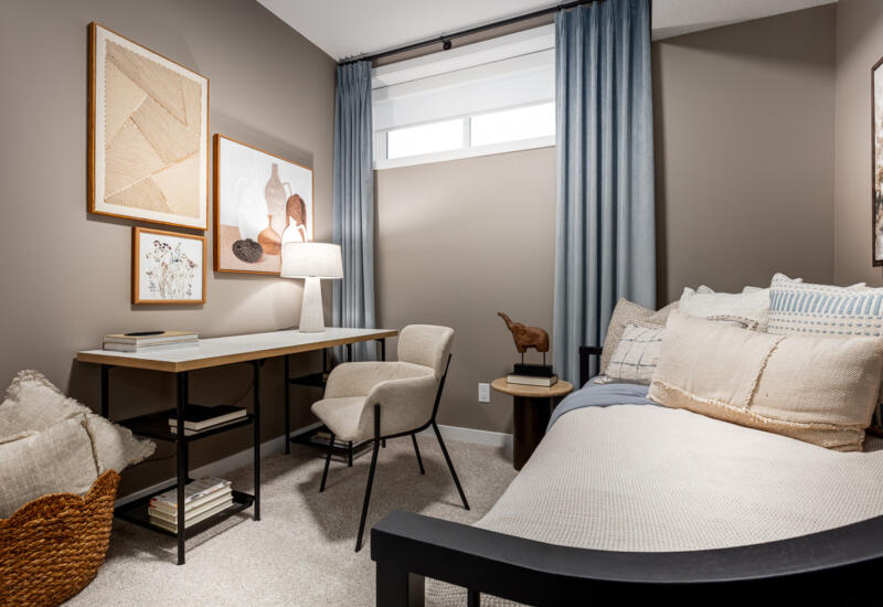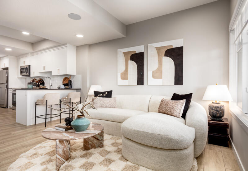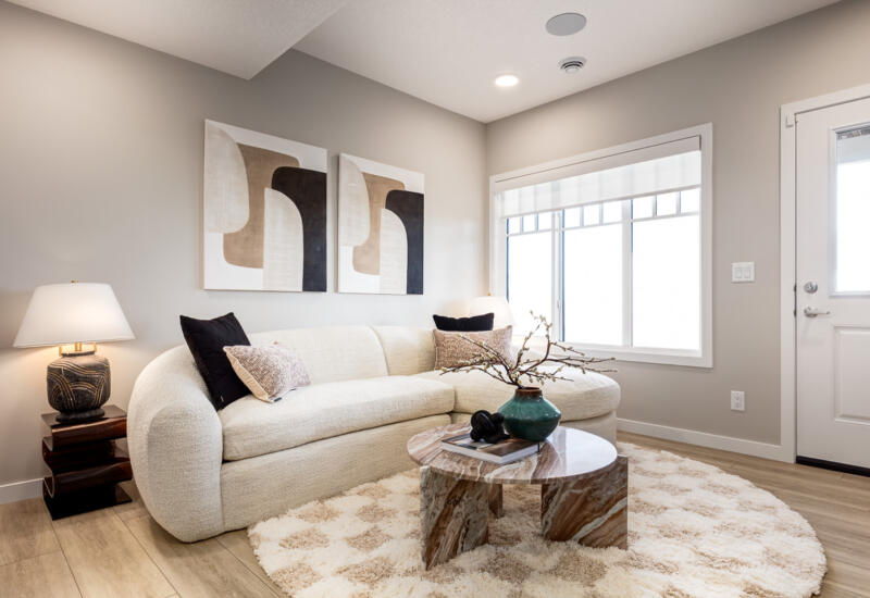 The Collingwood is a modern and versatile 3-bedroom show home, thoughtfully designed for both everyday living and effortless entertaining. A grand flex room with double French doors welcomes you at the front entry, leading to a stunning open-concept kitchen complete with a waterfall island, coffee station, and spacious pantry. Natural light pours through oversized upgraded windows and a large rear patio door, brightening the main floor and highlighting the full-height paneled electric fireplace, a striking centerpiece in the great room. Upstairs, a vaulted central bonus room creates separation between the luxurious primary suite and two additional spacious bedrooms, each with its own walk-in closet. A second full bathroom and a beautifully appointed laundry room complete the upper level for added convenience. The fully developed basement features a two-bedroom legal suite with a private entrance, perfect for extended family, guests, or rental income. Every detail in this home is crafted to support a dynamic lifestyle centered around connection, comfort, and flexibility.