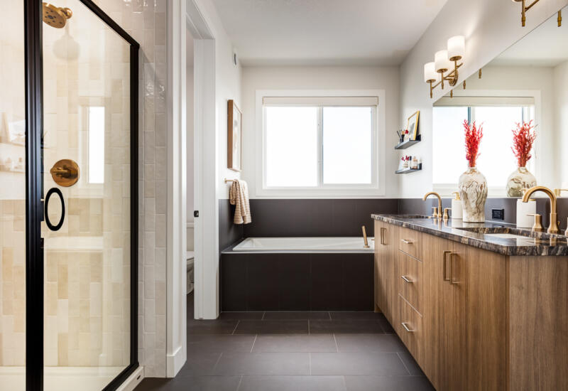 - 1 ¼” granite or quartz countertops in kitchen, ensuite and all baths