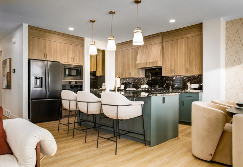 With over 2,400 square feet of beautifully designed living space and four spacious bedrooms, the Maverick offers a grand and inviting atmosphere. The open-concept layout features an upgraded chef’s kitchen, complete with a functional walk-through spice kitchen that leads directly to a mudroom outfitted with custom lockers for effortless organization. The great room is a showstopper, anchored by a full-height electric fireplace and seamlessly looking out to a pressure-treated rear deck with an extension, perfect for entertaining or relaxing outdoors. Thoughtful extras elevate this home, including a versatile main floor flex room, an upstairs bonus room, and a luxurious primary suite featuring a walk-through closet that connects to the laundry room. The shared upstairs bathroom includes dual sinks for added convenience. Downstairs, an additional 702 square feet of developed space offers even more versatility, with two extra bedrooms, a spacious rec room, a full kitchen, laundry area, and a full bathroom, ideal for multi-generational living or guests.